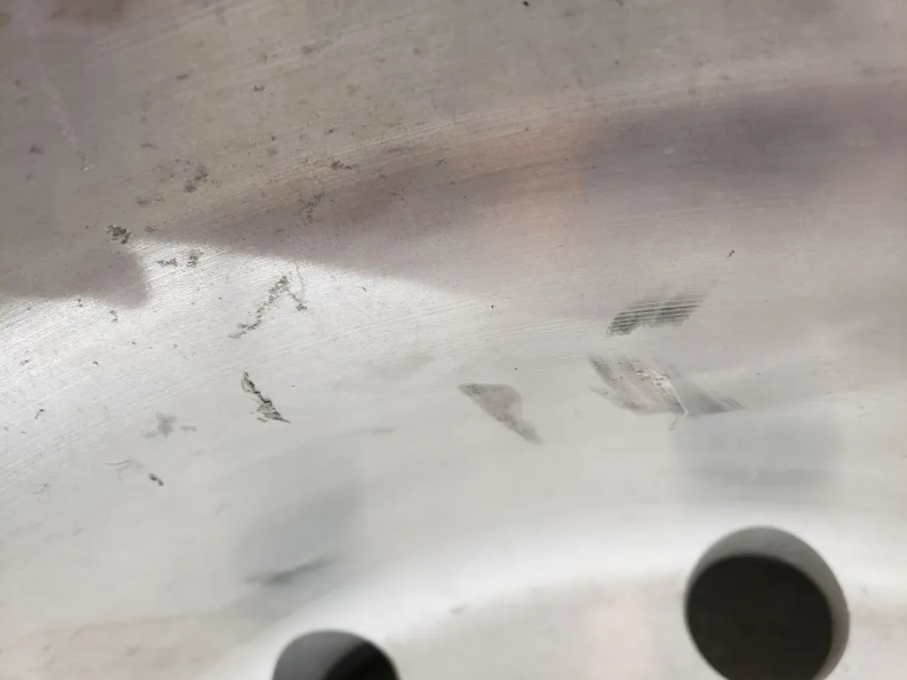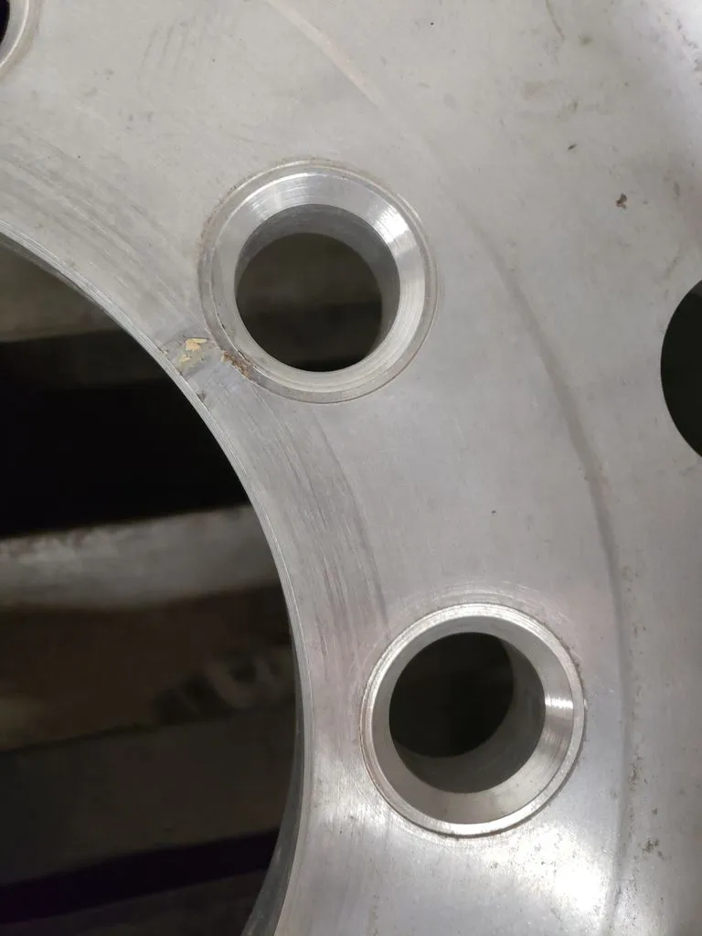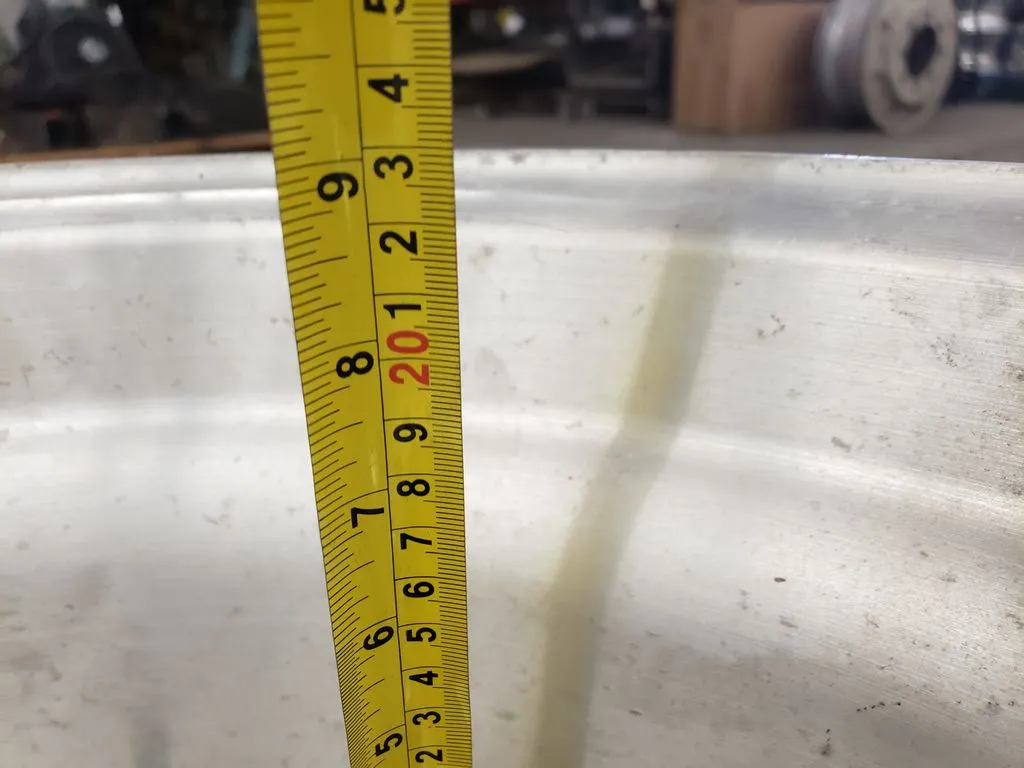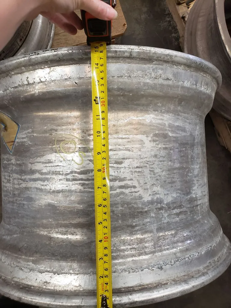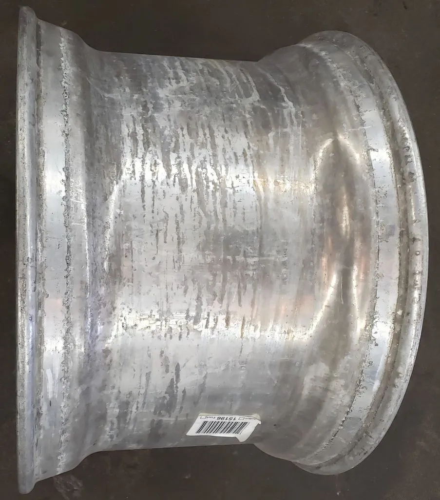 Alcoa brand super single 22.5" x 14" wheel in great used condition. Wheel has 9" offset on one side and 6" offset on other side. BUDD / stud-piloted mounting style.
