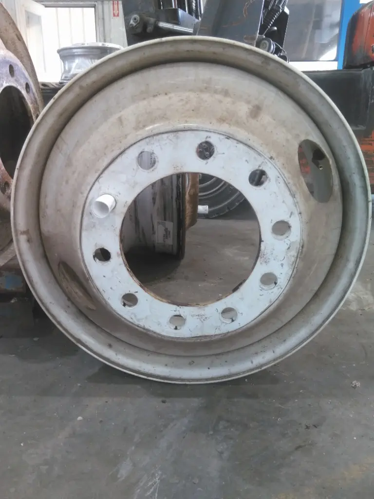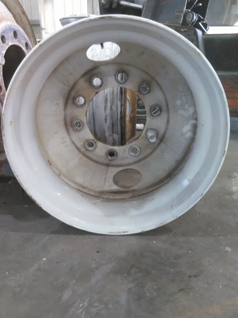 USED - B: USED - B USED STEEL DRIVE WHEEL, 22.5 x 8.25, PAINTED WHITE, 2 HAND HOLES