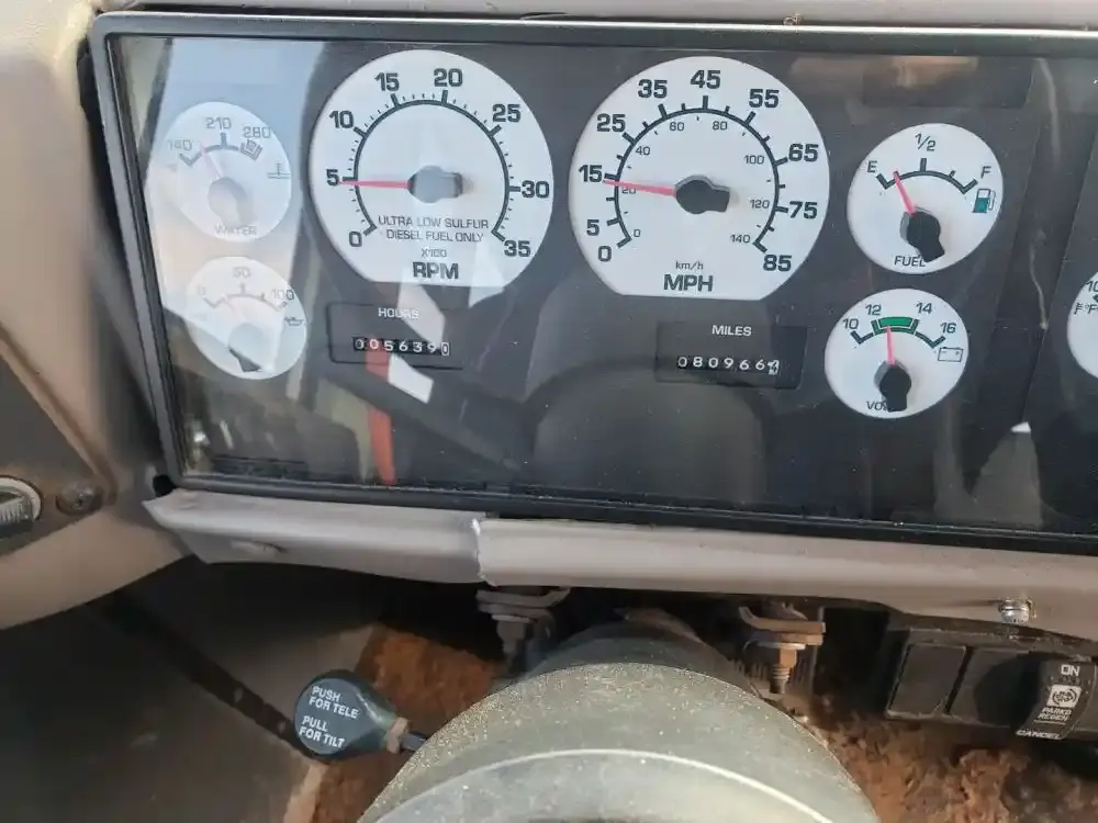 8 gauge instrument cluster with hours and odometer readings.