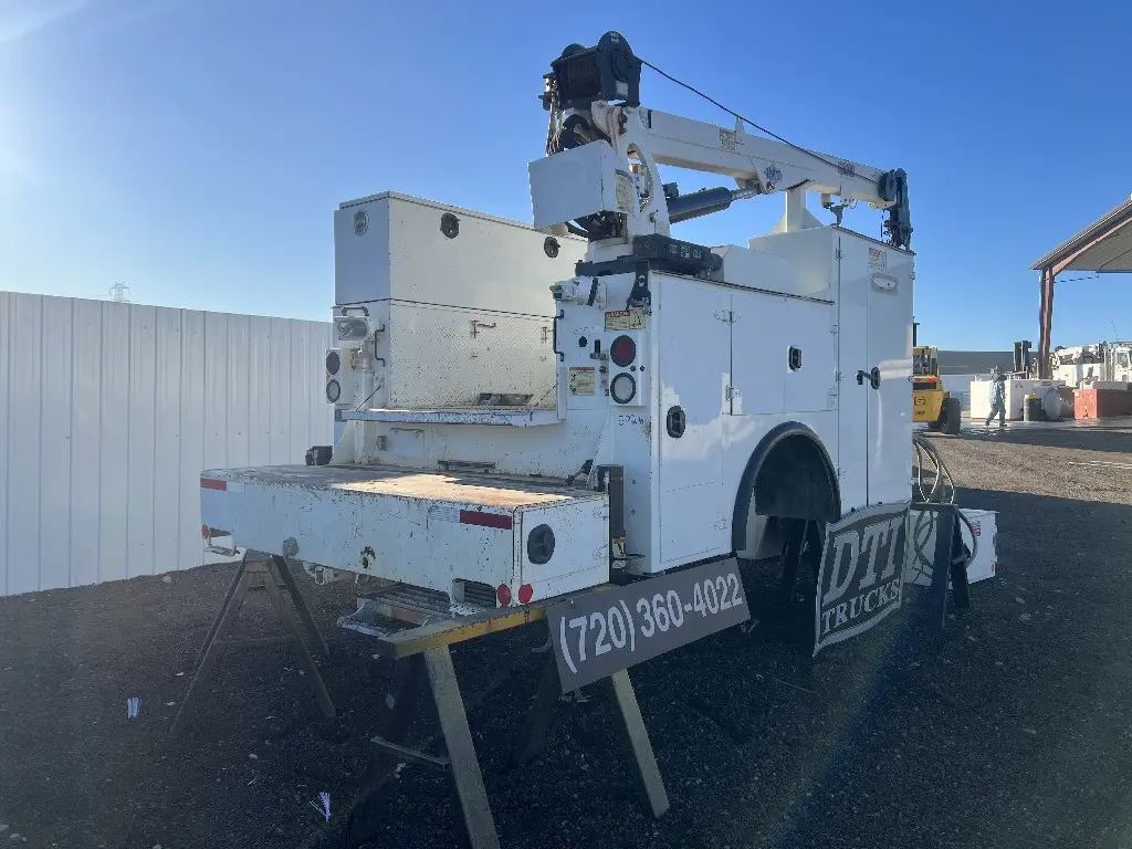 11'L Service Body, 7500lbs Hydraulic Crane, 22' Reach, Wired Remote, Two Draw Packs, 10 Storage Compartments Hydraulic Outriggers, 33" Rear Work Bench Bumper, Work Lights, Welding/ Toolbox Air Hose Reel, Fits 33,000 GVW Trucks With 85" Cab To Axle, Rust Free, Call DTI Trucks for More Information and Shipping Quotes. Quality Install Services Available.