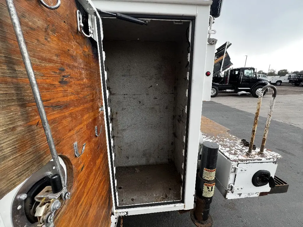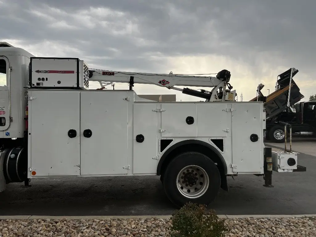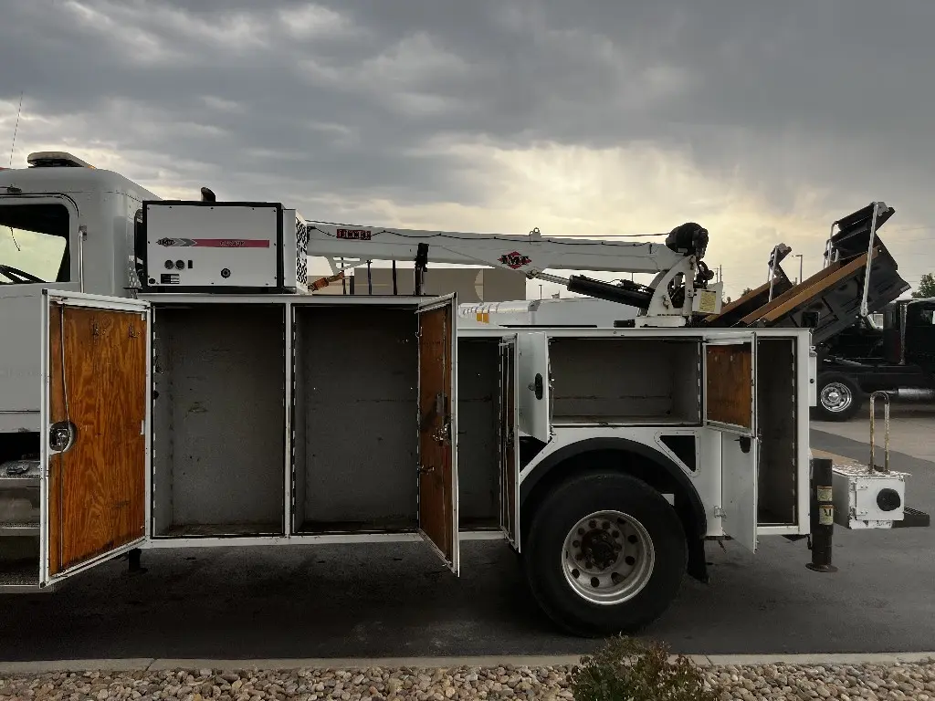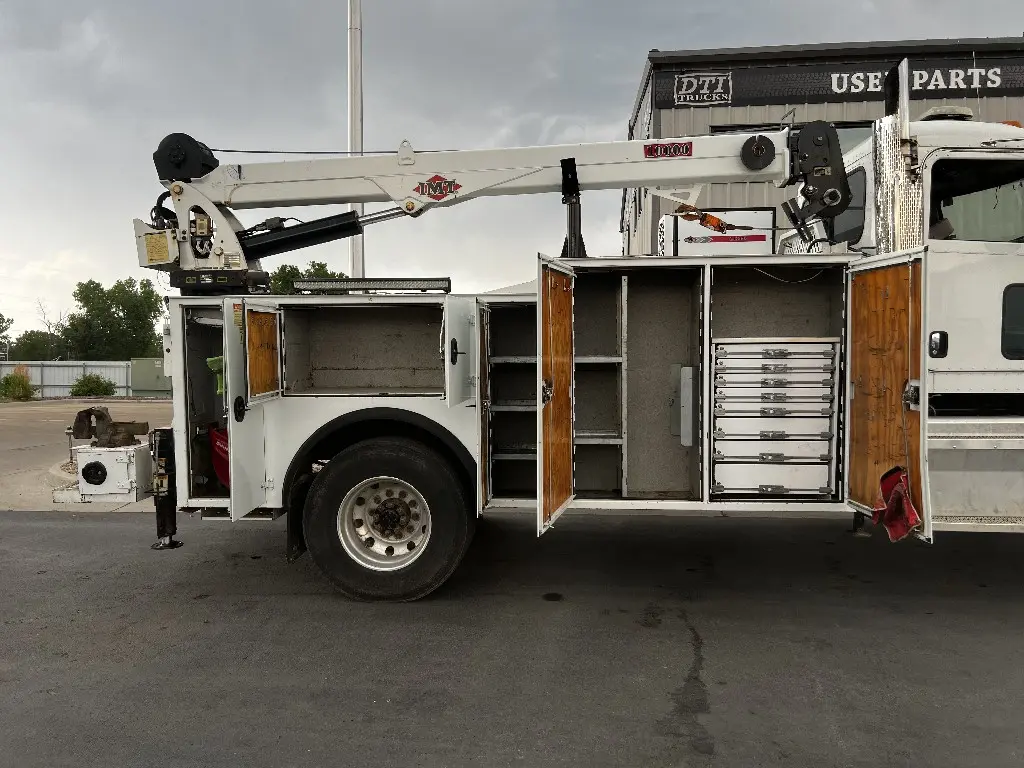 14'L 92"W Service Body Crane, 10,000lbs Hydraulic IMT Crane, 30' Reach, Wireless Remote, PTO needed, Air And Hydraulic Unit, 1113 Hours, 10 Storage Compartments, One Draw Pack, Hydraulic Outriggers, Two Foot Rear Work Bench Bumper, Bench Vice, Work Lights, Positive Pressure Cabinets, Air Hose Reel, Fits 33,000 GVW Trucks With 114" Cab To Axle, Rust Free, Call DTI Trucks for More Information and Shipping Quotes. Quality Install Services Available.