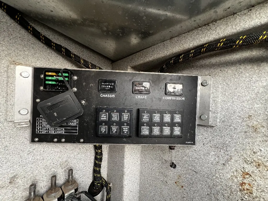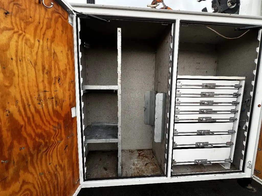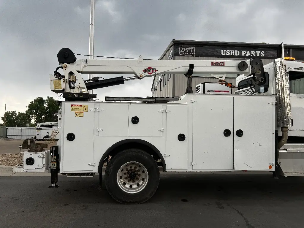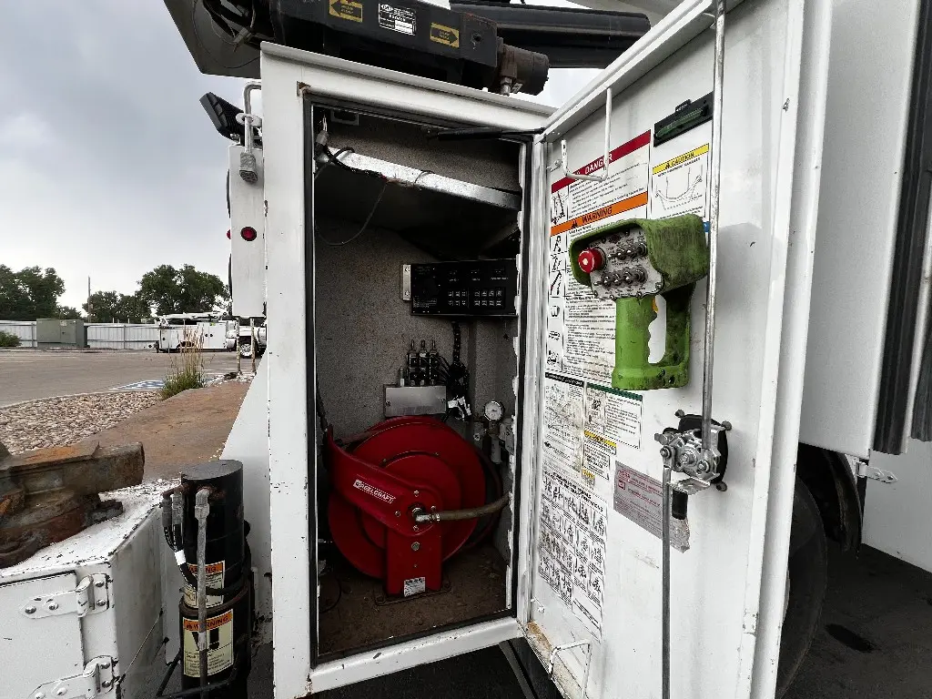 14'L 92"W Service Body Crane, 10,000lbs Hydraulic IMT Crane, 30' Reach, Wireless Remote, PTO needed, Air And Hydraulic Unit, 1113 Hours, 10 Storage Compartments, One Draw Pack, Hydraulic Outriggers, Two Foot Rear Work Bench Bumper, Bench Vice, Work Lights, Positive Pressure Cabinets, Air Hose Reel, Fits 33,000 GVW Trucks With 114" Cab To Axle, Rust Free, Call DTI Trucks for More Information and Shipping Quotes. Quality Install Services Available.
