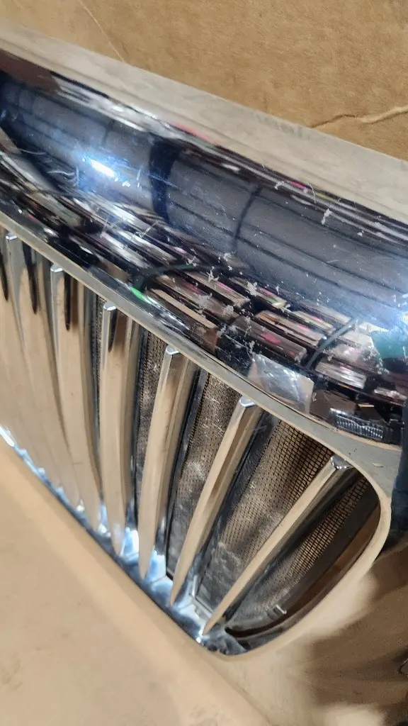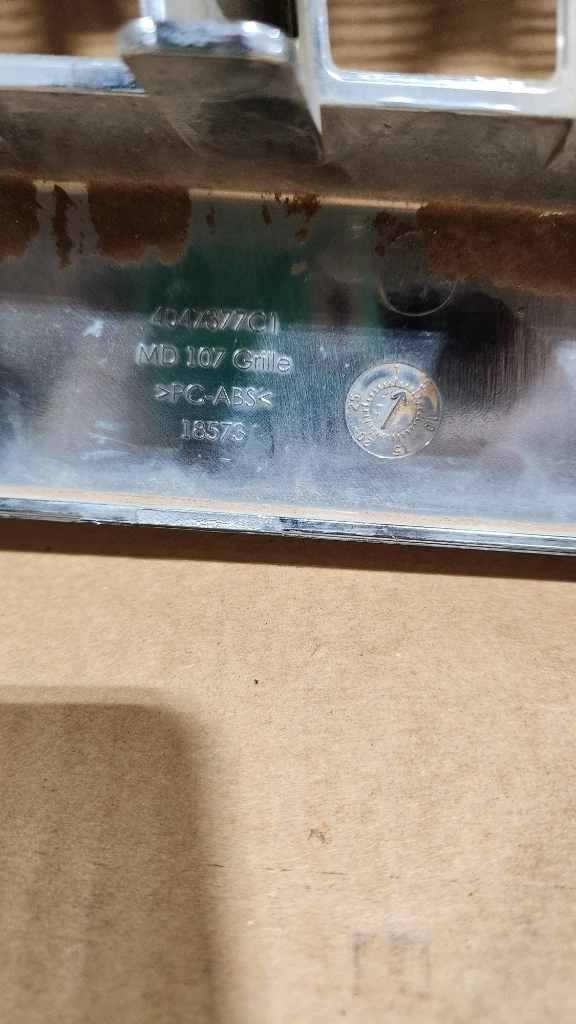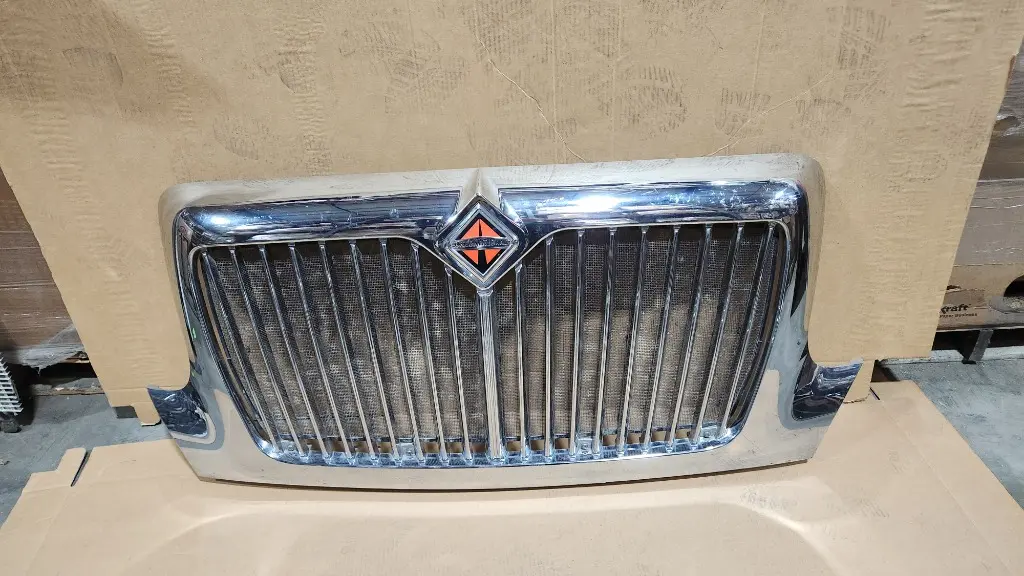 USED: USED International grille assembly, part number 4047377C1. Chrome plastic front grille in good used condition. Fits International MV Series trucks including MV607 and other MV medium duty models.