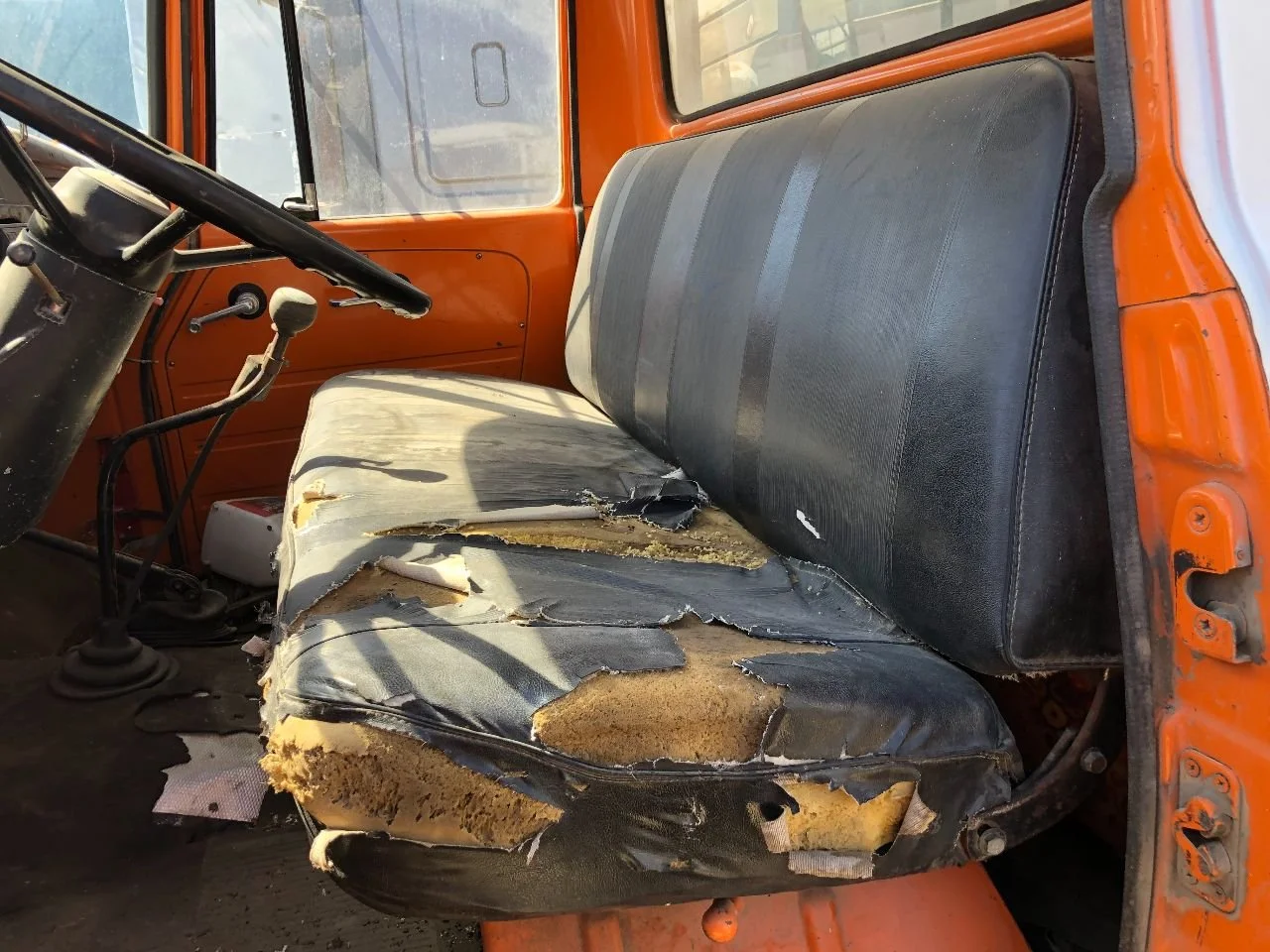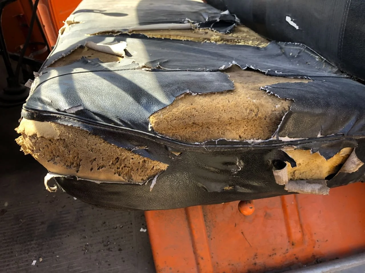USED: USED DRIVER SEAT HAS MULTIPLE LARGE TEARS & MISSING FOAM