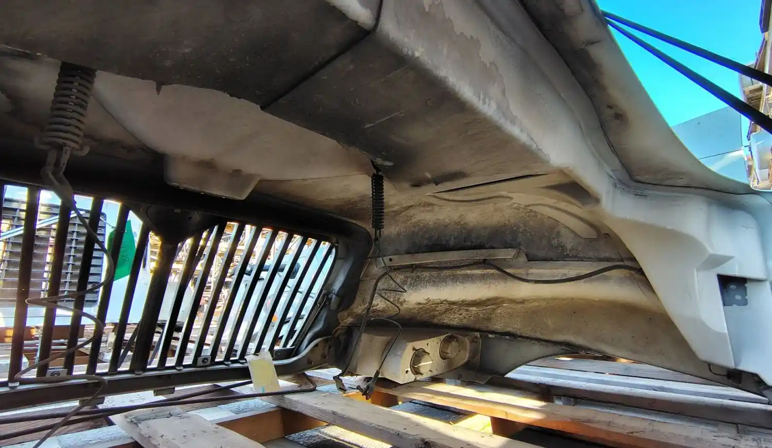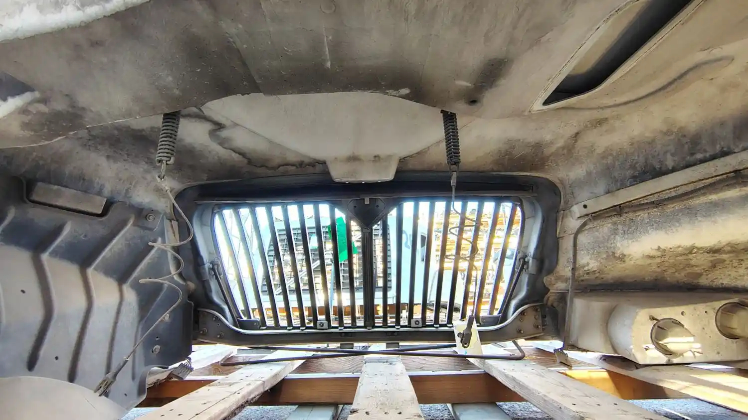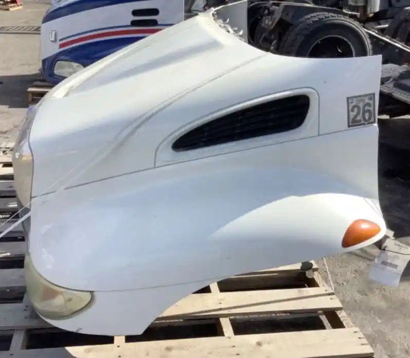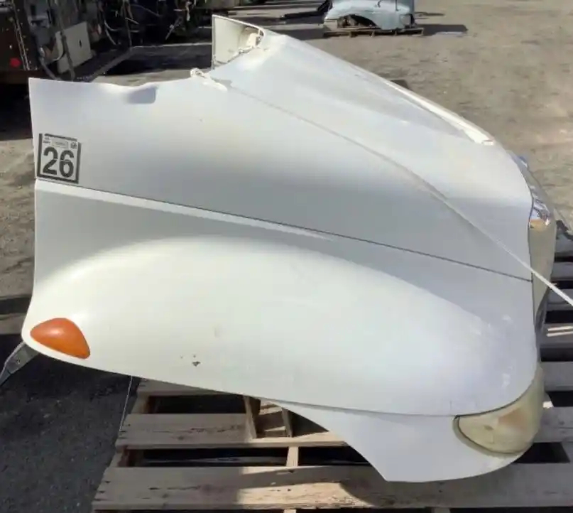 Used: Used 2006 International 4200 Hood, 41"L, Set Back Axle, P/N 3535801C98, 3807254C97. Small Chip On Right Fender, Small Crack On Upper LH Rear Edge. Repairable For Reuse.