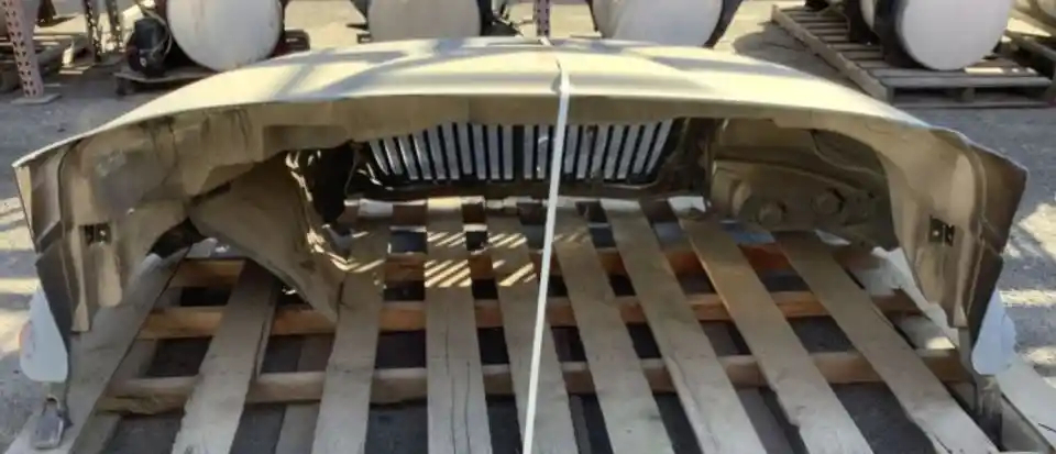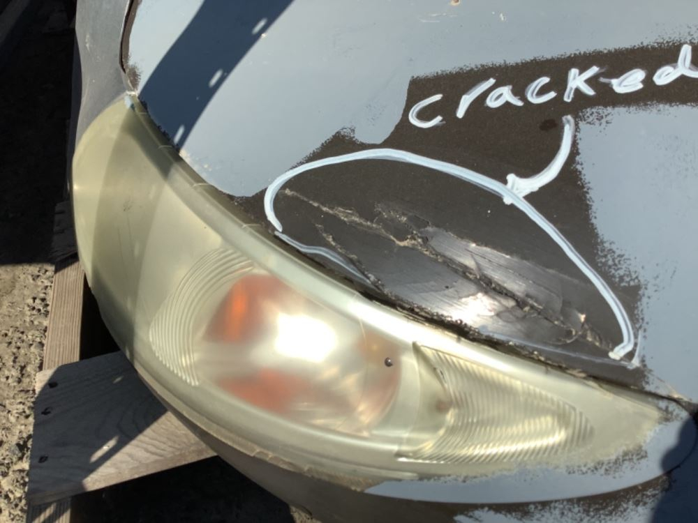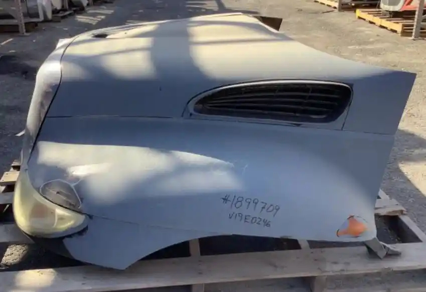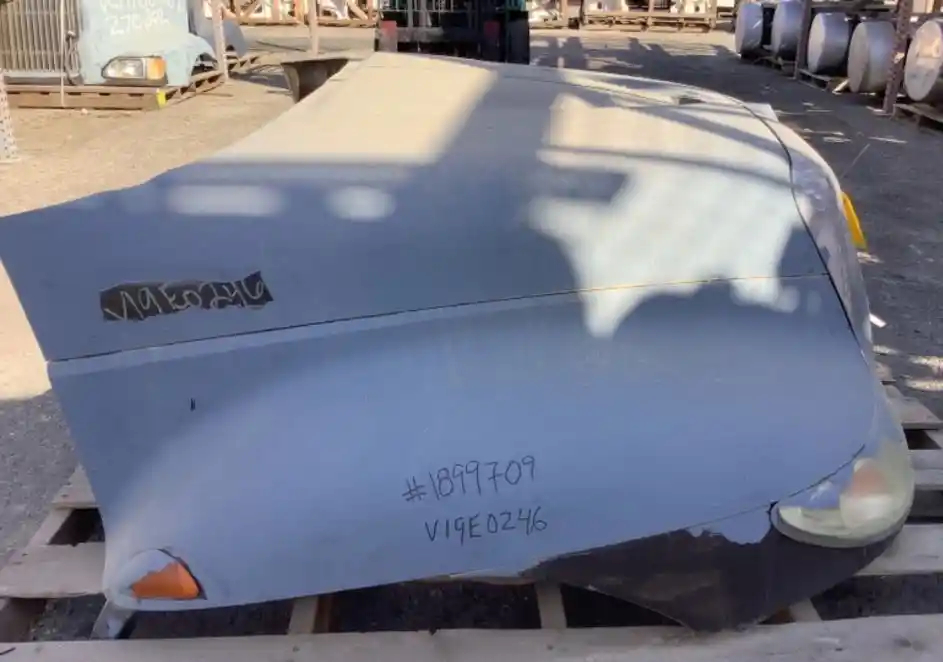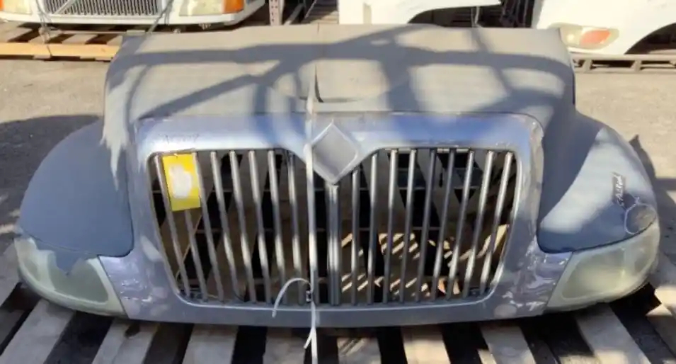 Used: Used 2007 International 4200 Hood, 41"L, Set Back Axle, P/N 3535801C98, 3807254C97. Cracked Above Left Headlight, Left Headlight Chipped. Repairable For Reuse.