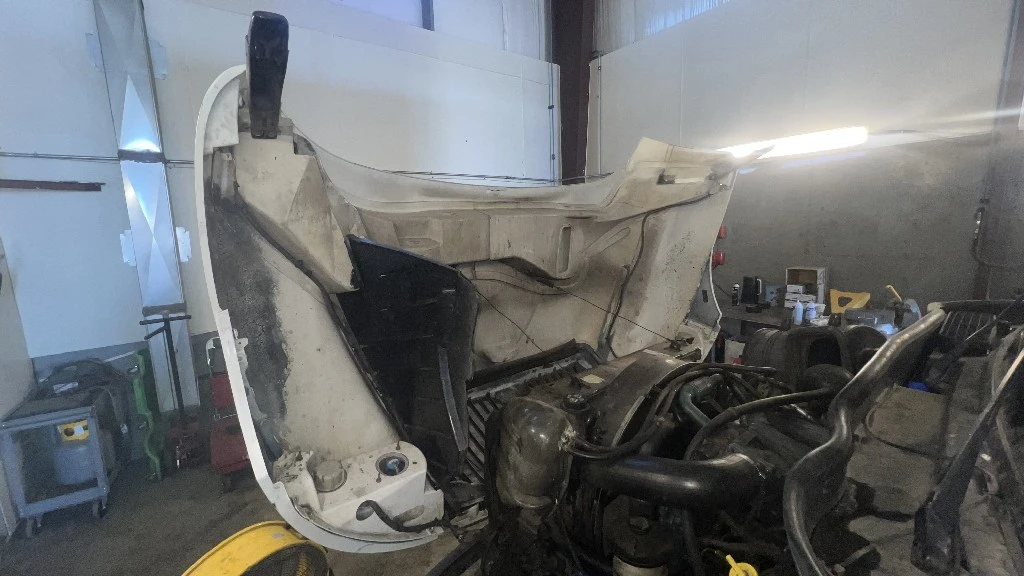 Complete Hood Assembly, Grill. Headlights included. Good condition. Call DTI Trucks for more information and a shipping quote.