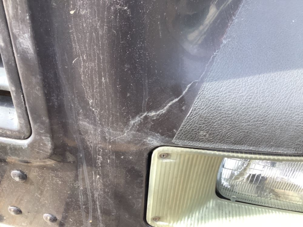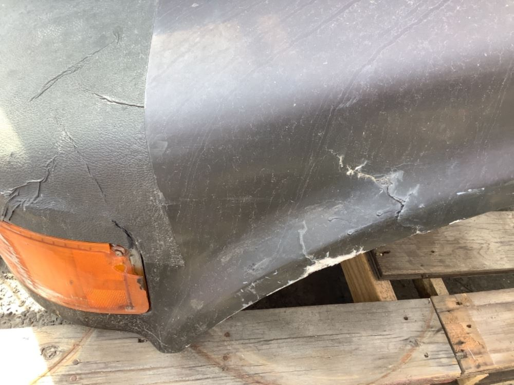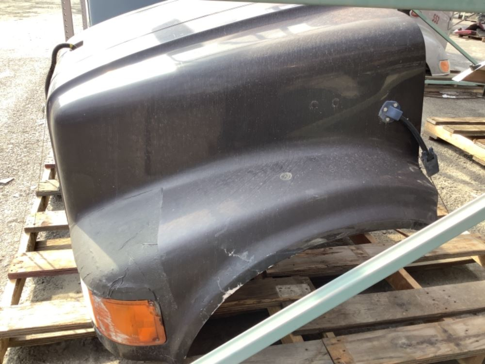 Used: Used 2002 International 4700 Hood, 44.5"L, P/N 2023778C1. Cracks On Front Left Fender. Repairable For Reuse.