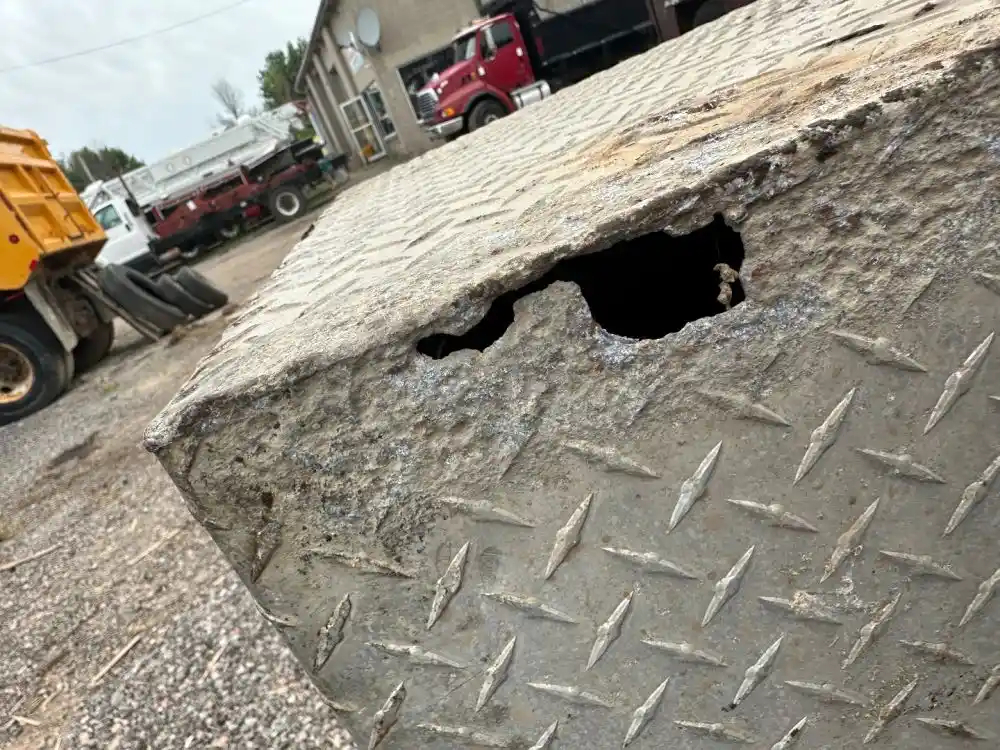 Used: Used USED TOOL BOX HAS SOME HOLES BUT OTHERWISE IN GOOD CONDITION ALUMINUM CHECKER PLATE 36"L 24"W 24"H