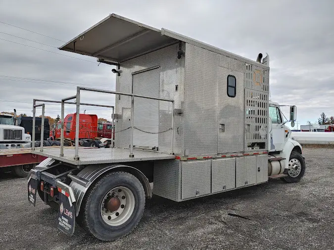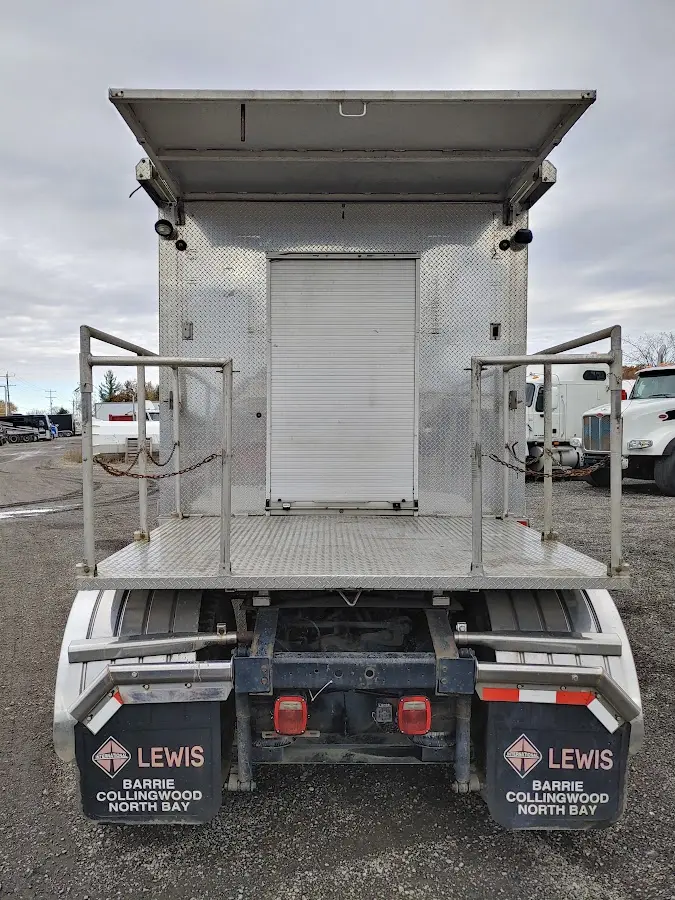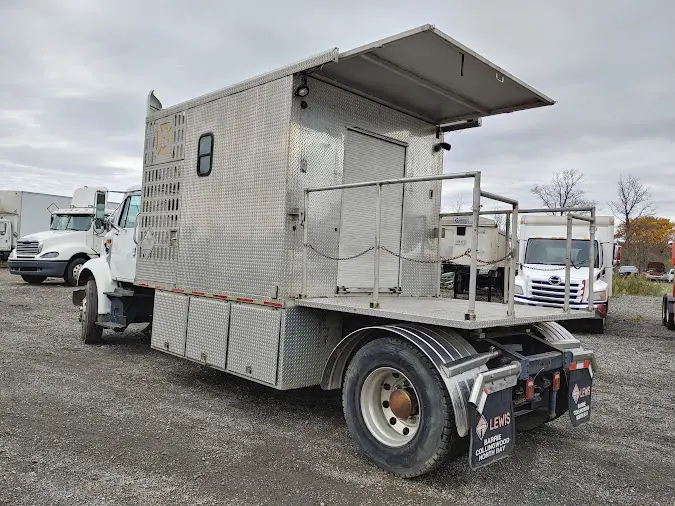 -Custom service body: has indoor workstation, Onan generator, hoses, hose connections, also has rear deck that allows for easy access to back up to a trailer and work on it