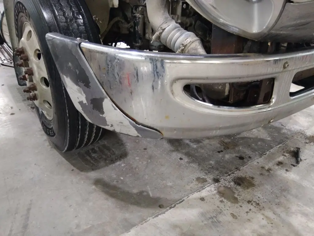 USED - A: USED - A USED STEEL FRONT BUMPER ASSEMBLY OFF A 2007 INTERNATIONAL 8600. 96.5" LENGTH, 15" HEIGHT, CHROME FINISH. 2569848