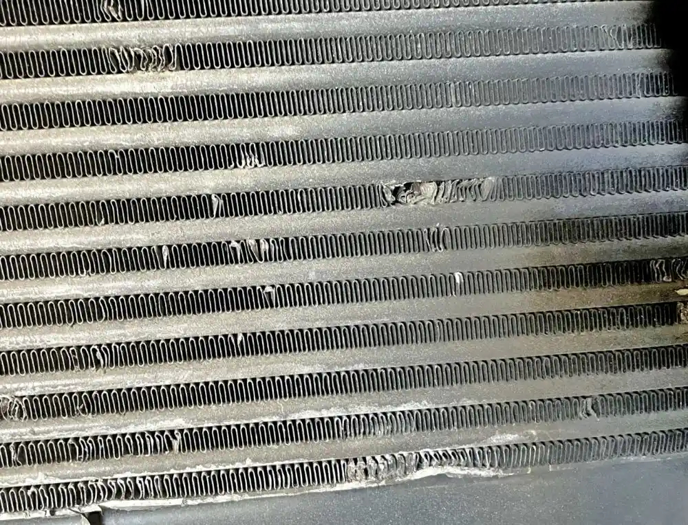 Used: Used Cooling Assembly, Complete, Includes RAD, CAC, and Condenser. Radiator P/N 2591560C91, 40 1/8"W x 24 1/2"H, 2.5" Inlet - Upper Left, 2.5" Outlet - Lower Right. CAC P/N 2591601C91, Has Damaged Fins & Bent On Bottom.