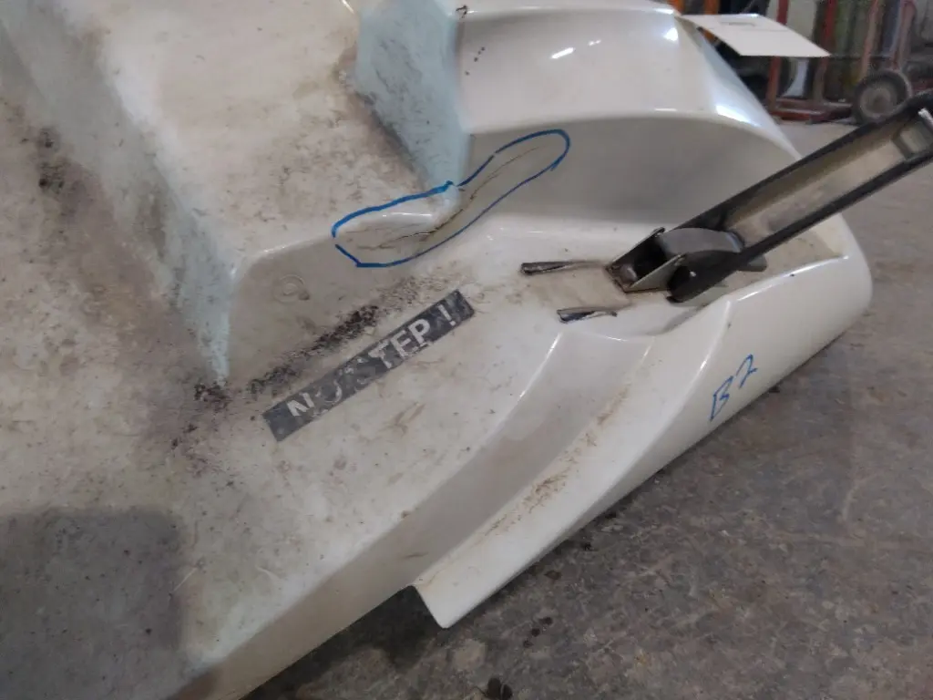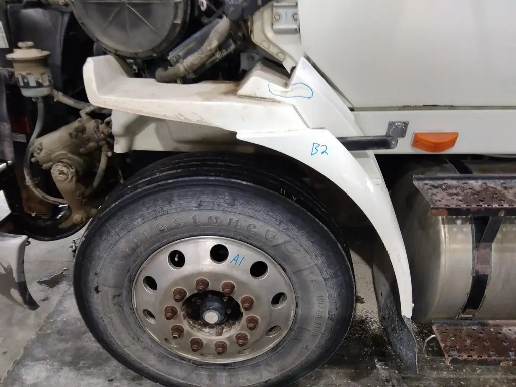 USED - B: USED - B USED LEFT/DRIVER SIDE WHITE PLASTIC FENDER EXTENSION OFF A 2007 INTERNATIONAL 8600. 53" IN LENGTH. 2569854
