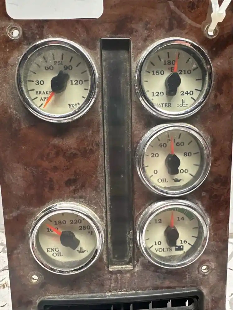 Used: Used USED GAUGE PANEL THAT HAS BRAKE PSI, WATER TEMP, OIL PRESSURE, BATTERY VOLTS, EXHAUST TEMP, ENGINE OIL TEMP, WITH WARNING LIGHT BAR AND AIR VENT.