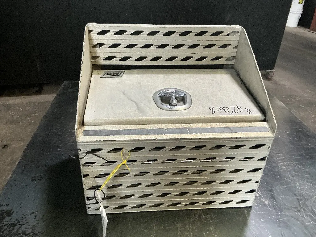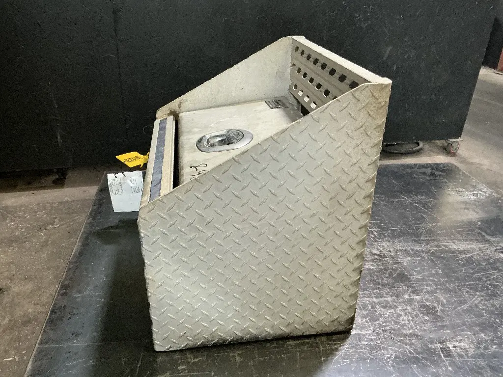 USED: USED Driver Side Aluminum Frame Mounted Tool Box From 2006 International 9200I With Door And Step, 24"L x 23"W x 17.5"H.