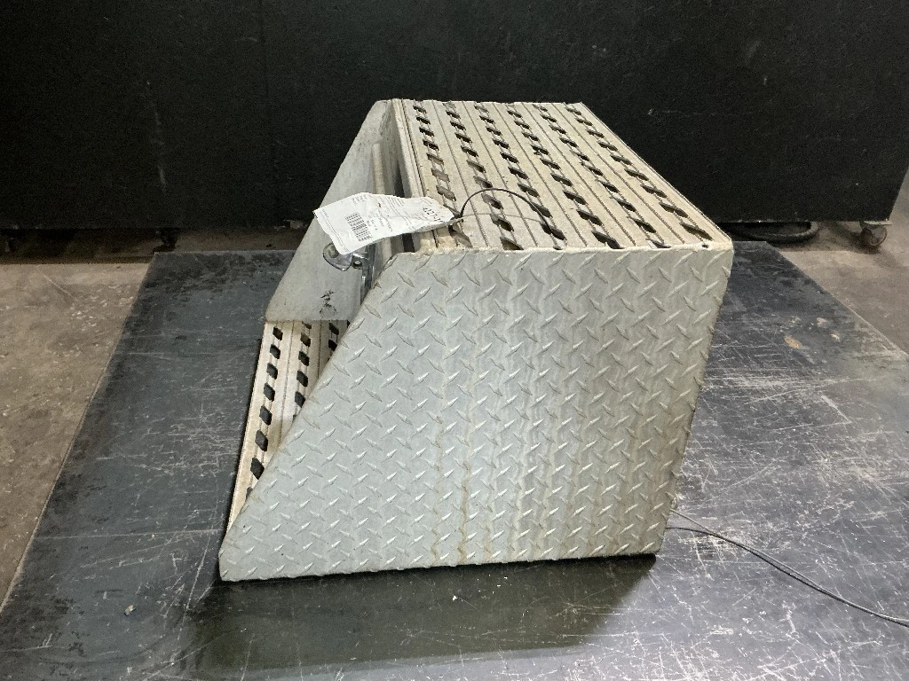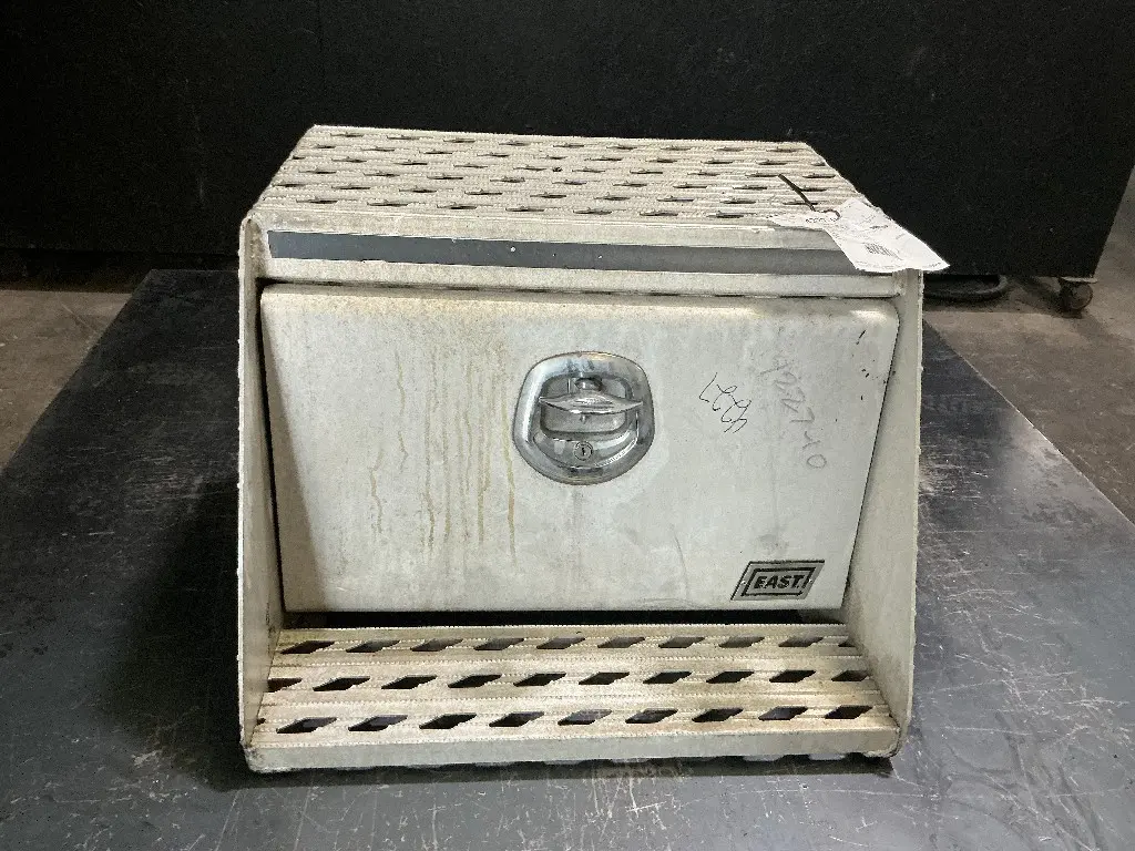 USED: USED Passenger Side Aluminum Frame Mounted Tool Box From 2006 International 9200I With Door And Step, 24"L x 22"W x 17.5"H.