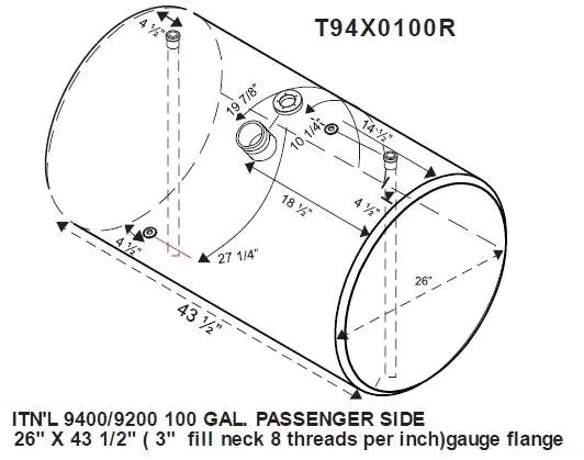 NEW - TANK ONLY: NEW - TANK ONLY INTERNATIONAL 9200/9400 100 GAL. FUEL TANK 26" X 45 1/2" DRIVER SIDE FRONT FILL.