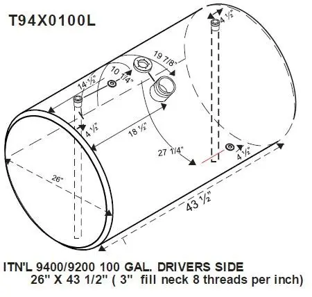 NEW - TANK ONLY: NEW - TANK ONLY INTERNATIONAL 9200/9400 100 GAL. FUEL TANK 26" X 45 1/2" PASSENGER SIDE FRONT FILL.