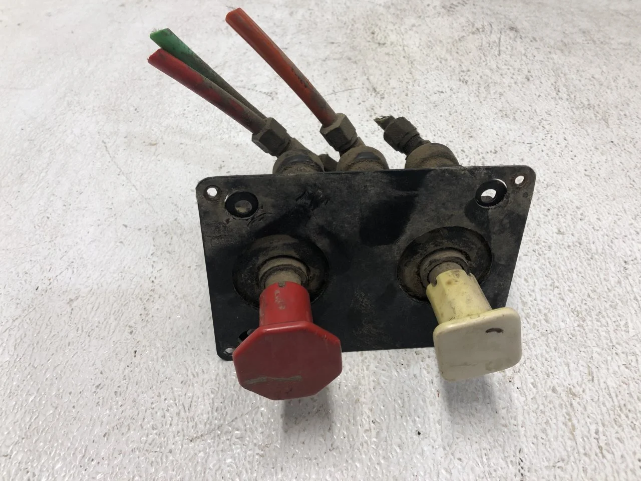 USED: USED YELLOW AND RED KNOB W/ BLACK BRACKET & VALVES