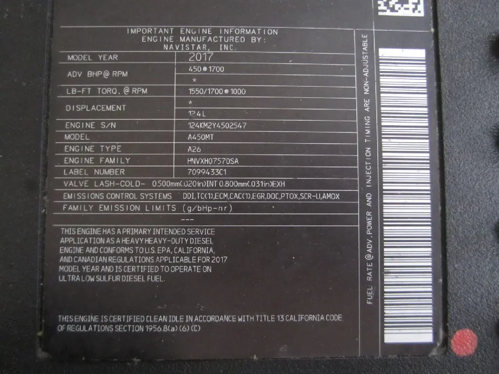 This item is from a INTERNATIONAL A26 EPA 17.