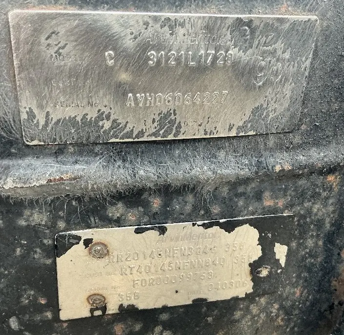 USED: USED 2007 International Corporate Air/IROS 40K Tandem Suspension Cutoff w/ Meritor RT40145 - 3.58 Ratiio Diffs & Housings, 10 Hole Pilot, Air Drum Brakes, ABS. P/N'S RD20145NFN4319358, RR20145NFN3246358