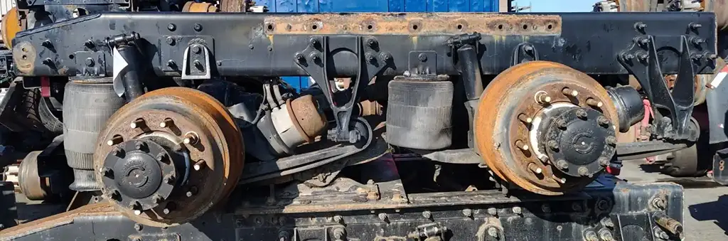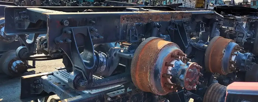 USED: USED International Corporate Air/IROS Tandem Suspension Cutoff w/ MT4014X- 3.36 Ratio Diffs & Housings. 10 Hole Pilot, Air Drum Brakes, ABS, STD Track. P/N MD2014X3DFRNN542336, MR2014X3MFRNN521336.
