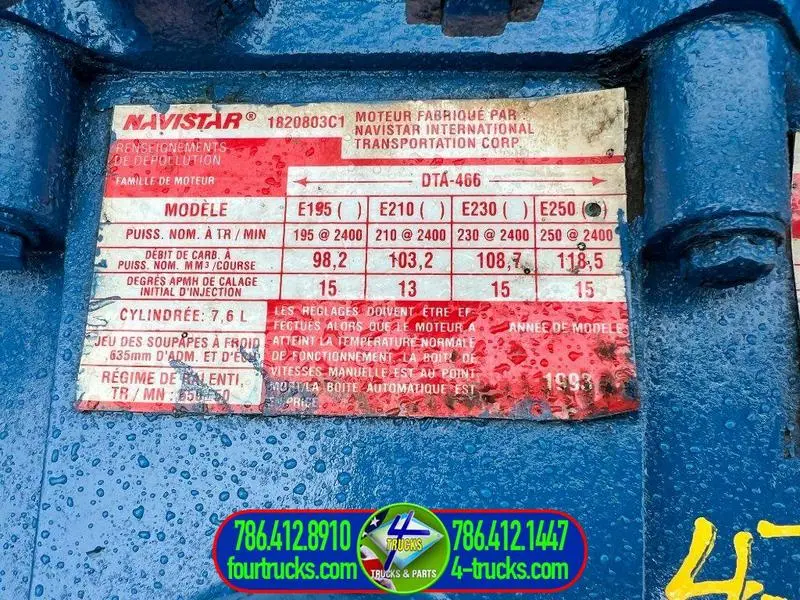 USED: USED USED 1.993 DTA-466 INTERNATIONAL ENGINE, 250HP, 7.6L, AIR TO AIR, S/N:468GM2U0690443, COMPLETE, INSPECTED AND TESTED RUNNING ENGINE, ALSO MANY IN STOCK