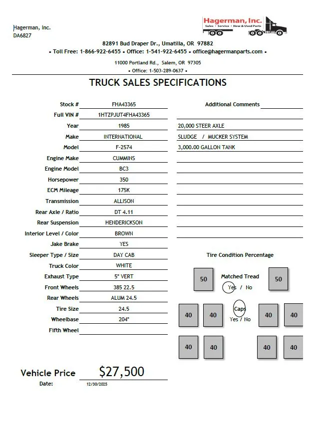 1985 INTERNATIONAL F-2574 VEHICLE FOR SALE