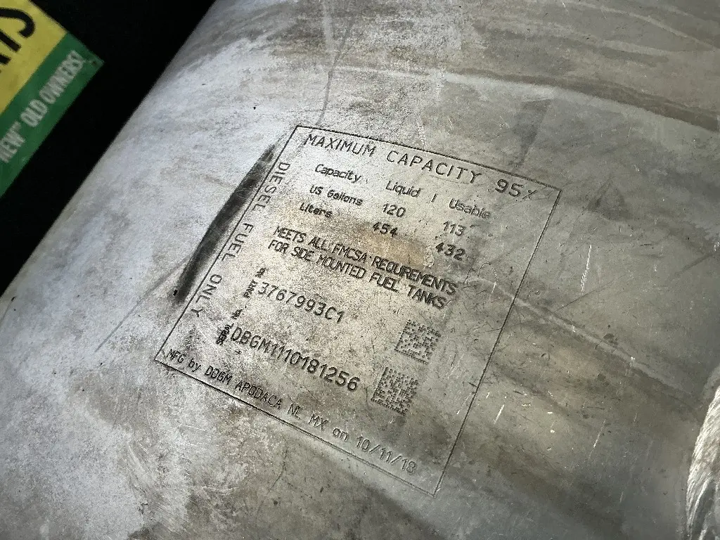 USED: USED Driver Side Fuel Tank, 54" x 26", 120 Gallon Capacity, Center Fill, w/ Straps & Brackets.