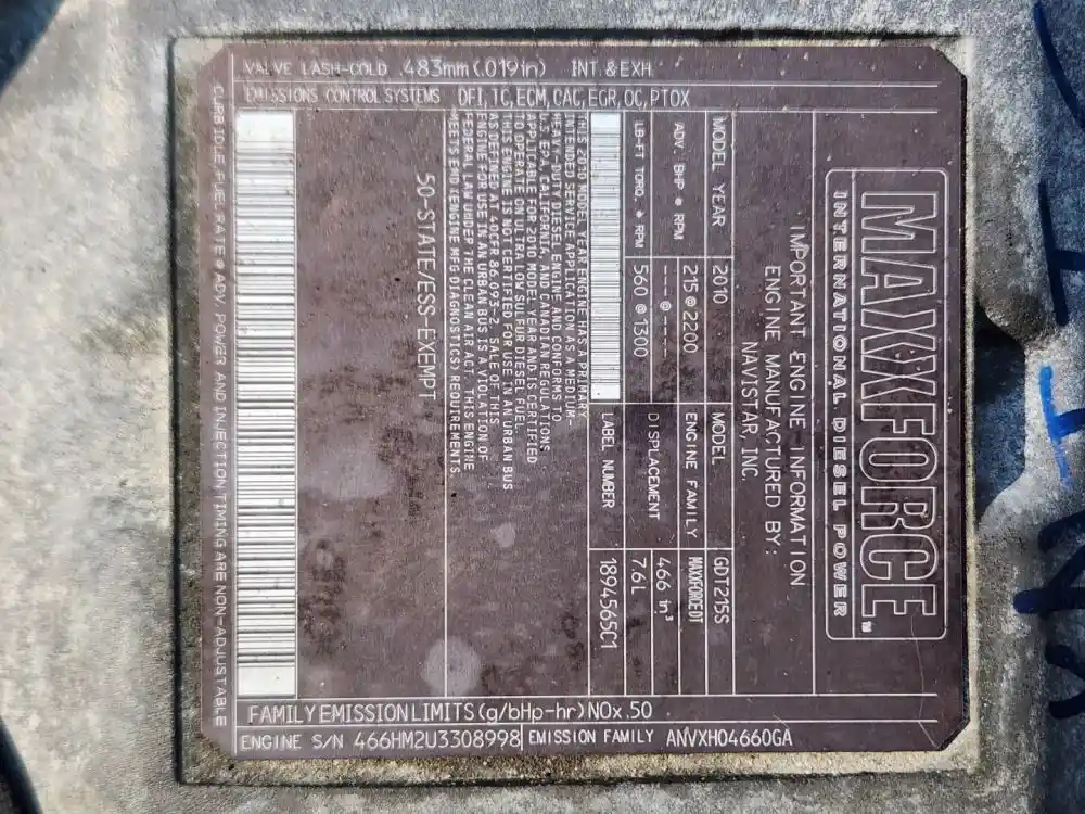(Used) 2011 International GDT215S, MAXXFORCE DT, ENGINE ASSEMBLY- Family Number: ANVXH04660GA, Displacement: 7.6L, Horsepower: 215, Part Number: 1894565C1 ESN: 466HM2U3308998, E.C.S.: DFI, TC, ECM, CAC, EGR, OC, PTOX, For more information about this item, give us a call. We ship Worldwide! (CRG HEAVY TRUCK PARTS) 929 W PULASKI HWY ELKTON, MD 21921