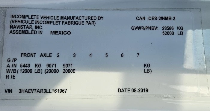 VIN #: 3HAEVTAR3LL161967