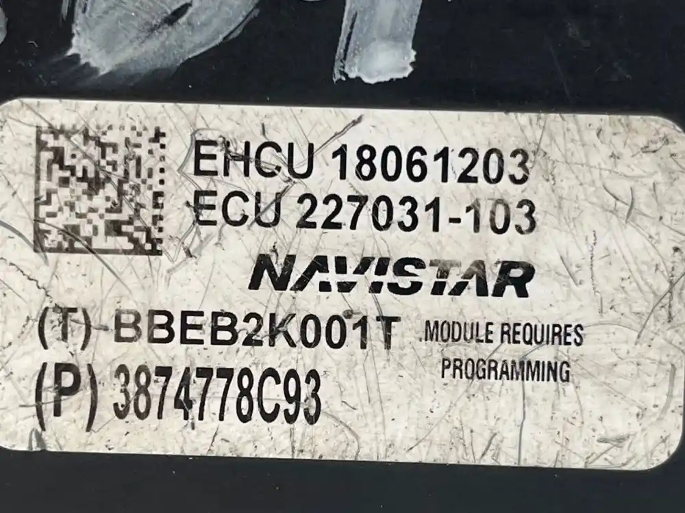 (Used) 2012 International TERRASTAR, ABS MODULATOR VALVE - Make: International, Model: NAVISTAR, Part Number: 3874778C93 1 Rectangular Plug with 38 Pins, Reference images for condition, For more information about this item, give us a call. We ship Worldwide! (CRG HEAVY TRUCK PARTS) 929 W PULASKI HWY ELKTON, MD 21921