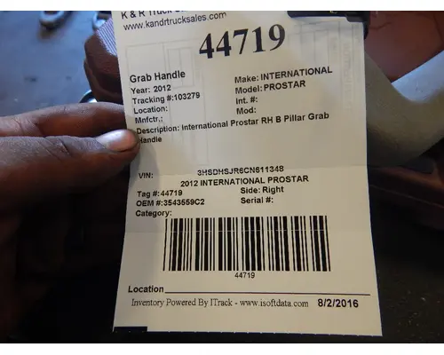 USED: USED International Prostar RH B Pillar Grab Handle