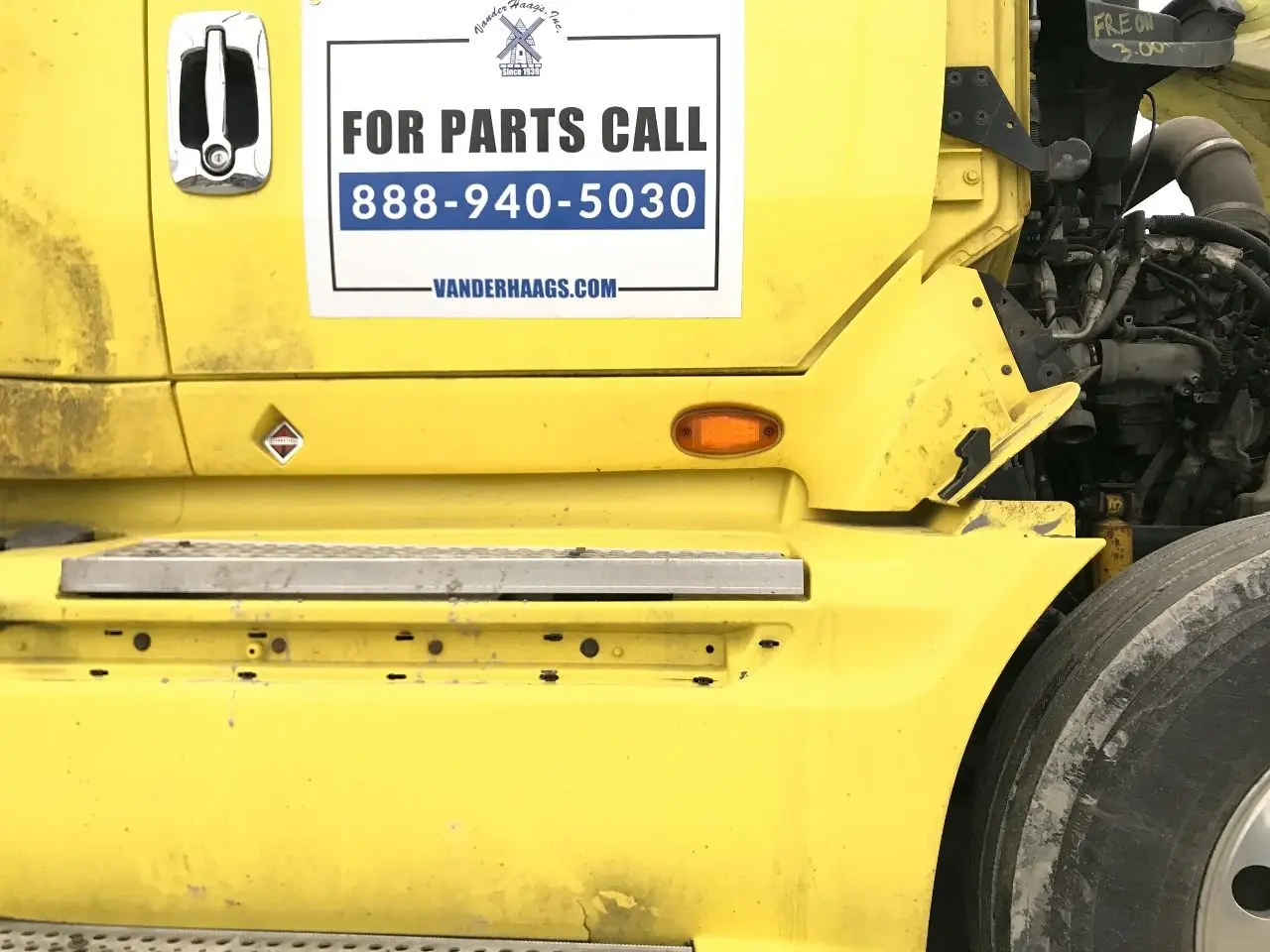 Back Glass Bumper Assembly, Front Cab Charge Air Cooler (ATAAC) Dash Assembly Door Assembly, Front Door Glass, Front Fender Front End Assembly Fuel Tank Grille Headlamp Assembly Hood Instrument Cluster Mirror (Side View) Radiator Seat, Front Side Fairing Sleeper Sleeper Fairing Tool Box Wheel Windshield Glass