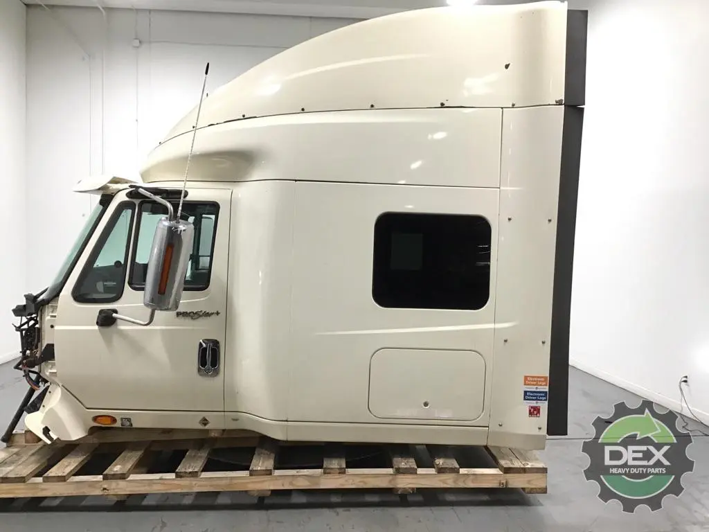 Recycled: Recycled '12 International Prostar complete groomed sleeper cab assembly, wired for US07 MF13 with eaton manual trans, power windows and locks, heated / power mirrors, air driver and fixed passenger seats, rubber floor, with fairings, single bunk. Good solid, clean cab!