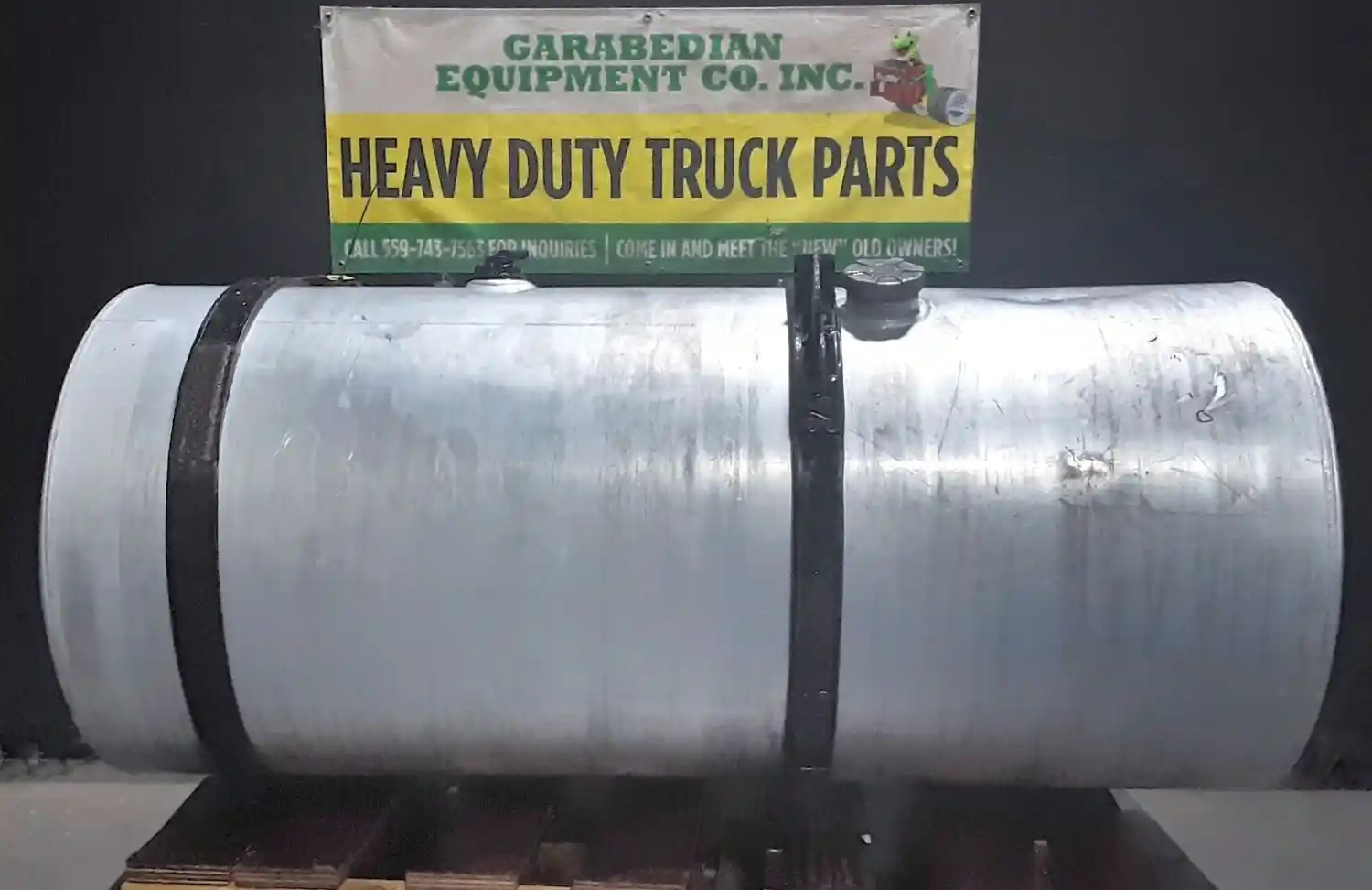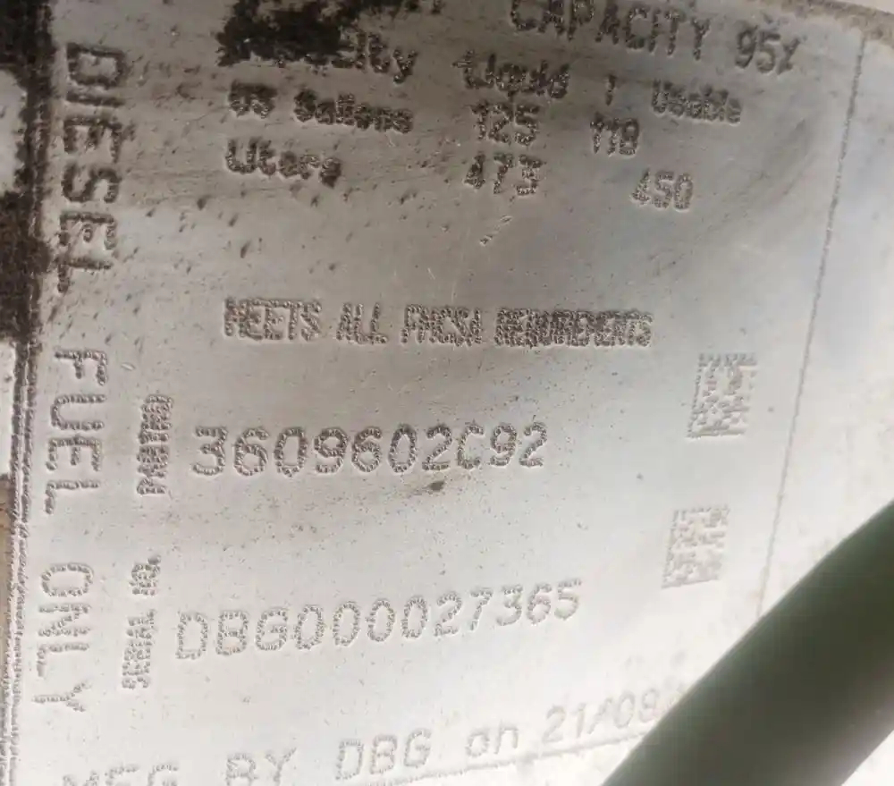 Used: Used Driver Side LH Fuel Tank, 57"L x 26"Dia. P/N 3609602C92, 125 Gallon Capacity, Rear Fill, w/ Straps & Brackets. Small Dent On Top Rear