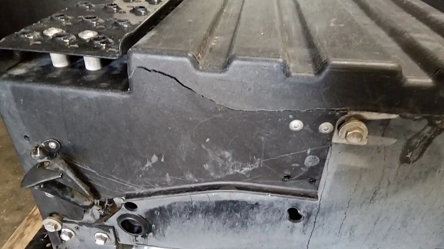 Used: Used 2020 International RH613 Driver Side Battery Box, Tray Dimensions 29"L x 18"L x 10"H, 4 Battery Capacity. Side Of Lid Is Cracked.