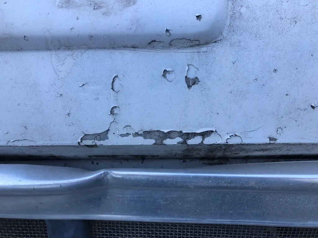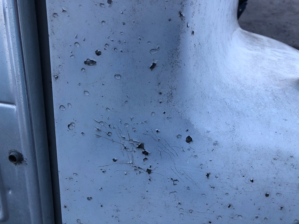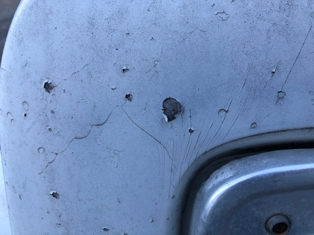 USED: USED COMPLETE, CHIPPED ON REAR LH AND RH FENDER AREA, PAINT FADED, CHIPPING, CRACKING, ON FRONT FACE AROUND GRILLE AND HEADLAMPS, GRILLE HAS MULTIPLE DENTS
