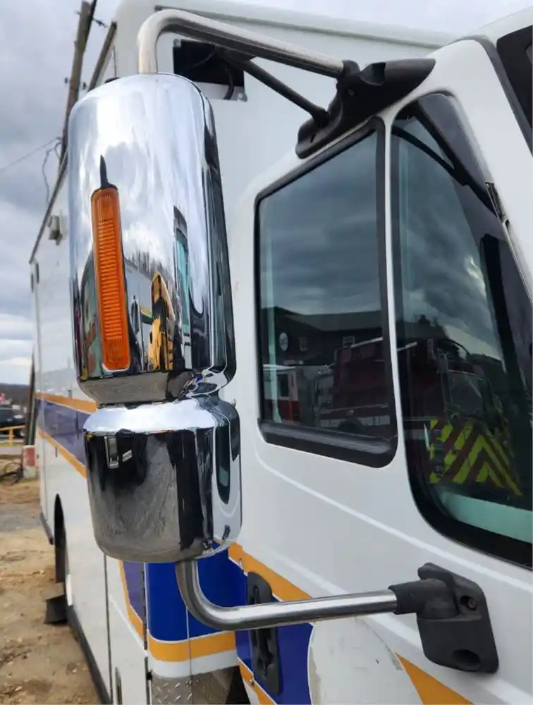 (Used) 201e International TERRASTAR, SIDE VIEW MIRROR- Side: Passenger Right Side, Color: Chrome, Type: Power, Mounts: Door, Reference images for condition, For more information about this item, give us a call. We ship Worldwide! (CRG HEAVY TRUCK PARTS) 929 W PULASKI HWY ELKTON, MD 21921