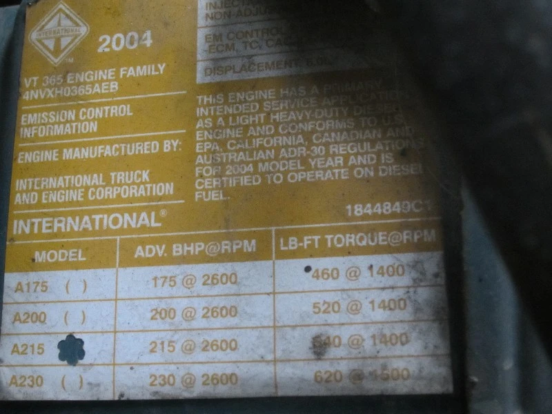 International VT365, Model# A215, Engine Family# 4NVXH0365AEB, chk