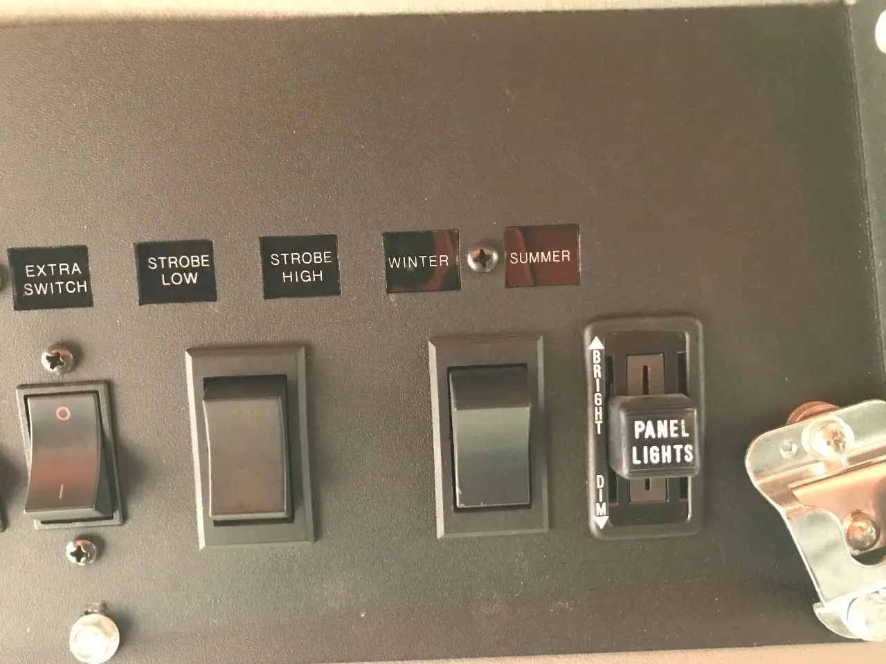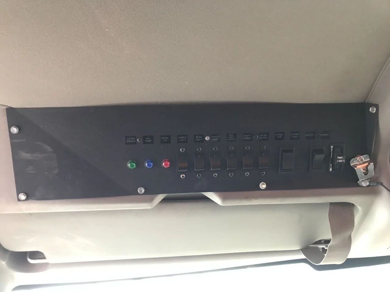 USED: USED FILTER BYPASS, OIL TEMP, BODY UP, AMBER LIGHT, WING LIGHT, SANDER LIGHT, TAIL LIGHT PUFFER, RIGHT SPINNER, EXTRA SWITCH, STROBE LOW, STROBE HIGH, WINTER, SUMMER, PANEL LIGHTS