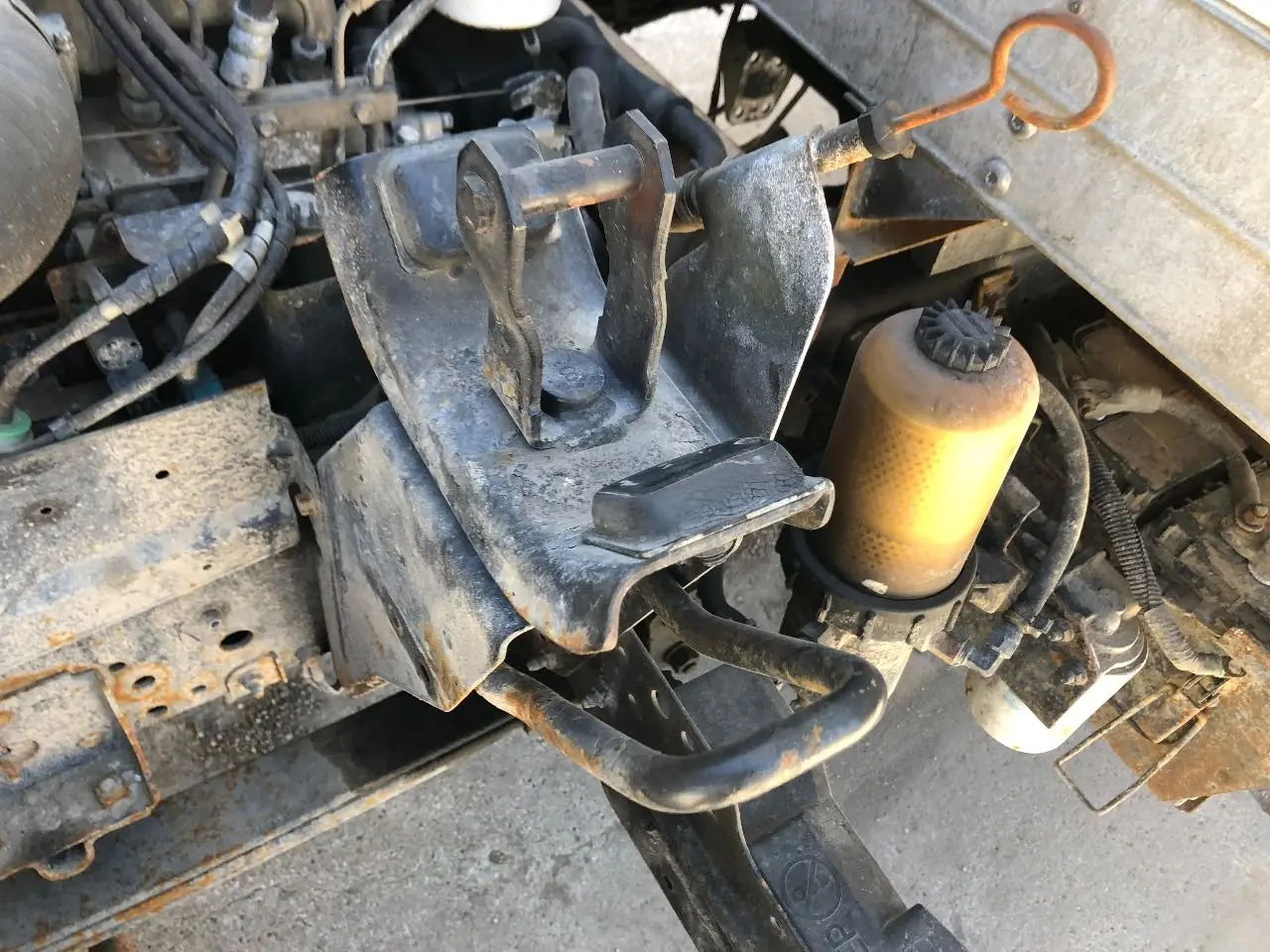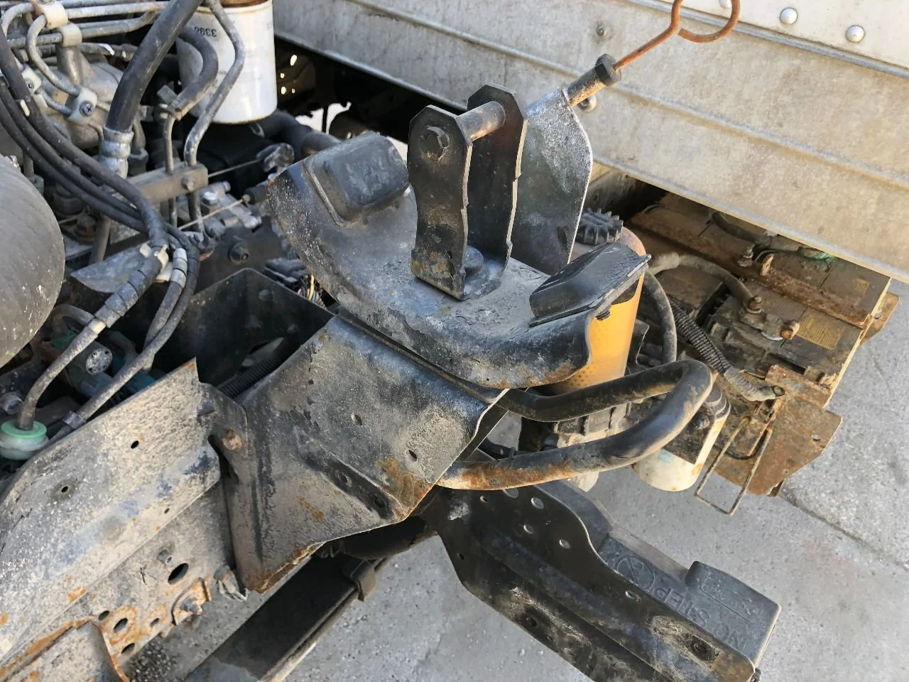 USED: USED FRAME MOUNT, LOWER LATCH ANCHOR FOR CAB, DOES NOT INCLUDE FENDER EXTENSION