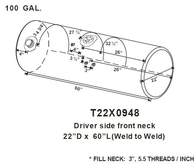 NEW - TANK ONLY: NEW - TANK ONLY KENWORTH T-300 100 GAL. FUEL TANK 22" X 62" DRIVER SIDE FRONT FILL.