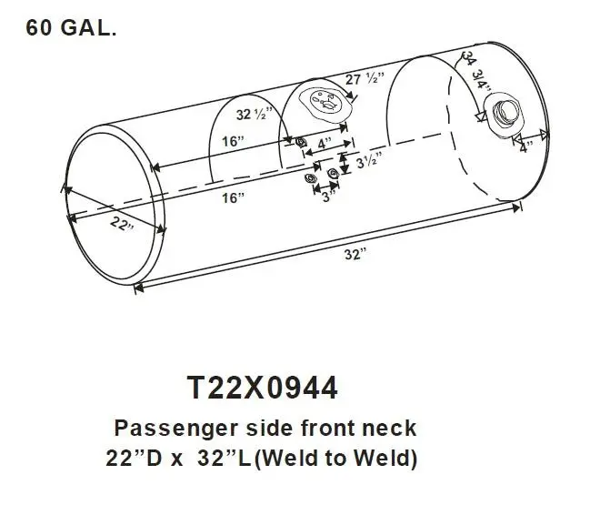 NEW - TANK ONLY: NEW - TANK ONLY KENWORTH T-300 60 GAL. FUEL TANK 22" X 34" PASSENGER SIDE FRONT FILL.