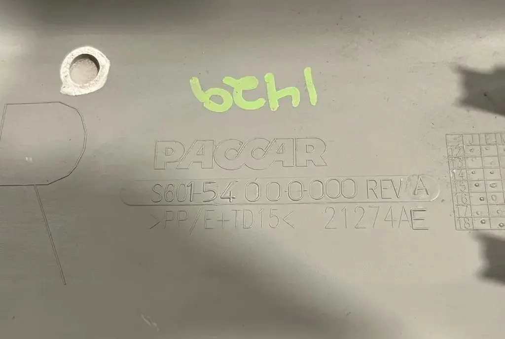 Interior trim panel pulled from a 2020 PACCAR run for approx 6K miles, non-wrecked. Part is in good used condition, see pictures. OEM P/N S601-5400-0000 REV A