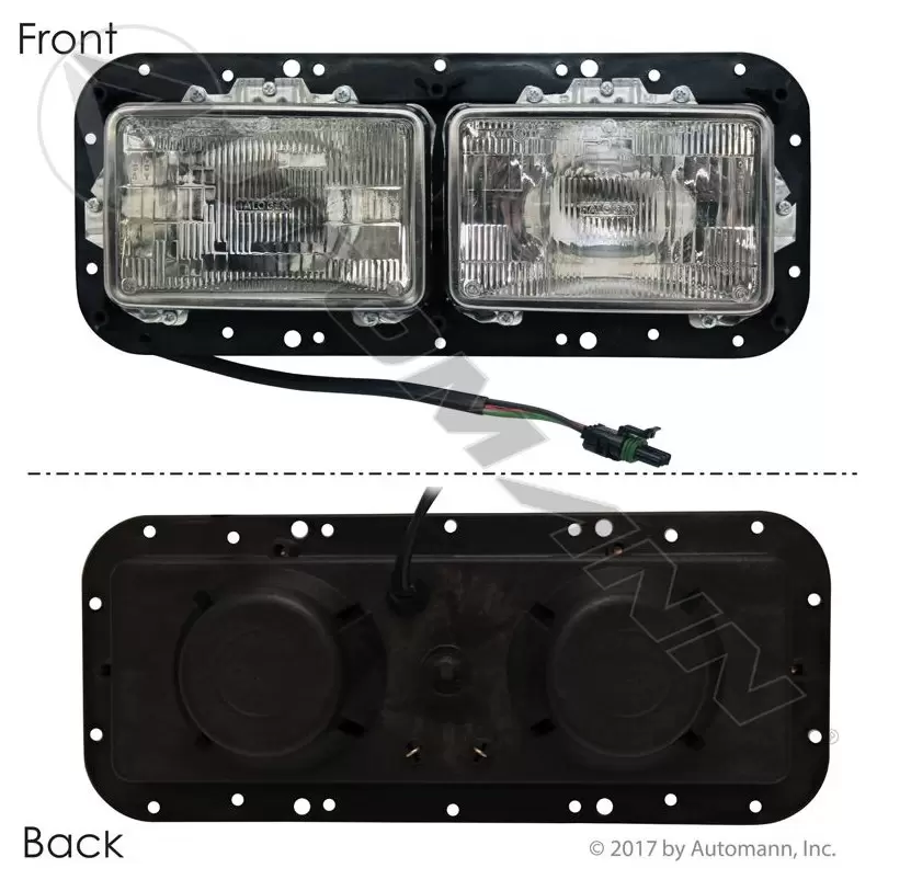 NEW: NEW HEADLAMP ASSEMBLY RH KENWORTH DUAL SMALL RECTANGULAR SEALED BEAMS 46.5" CABLE WITHOUT BEZEL