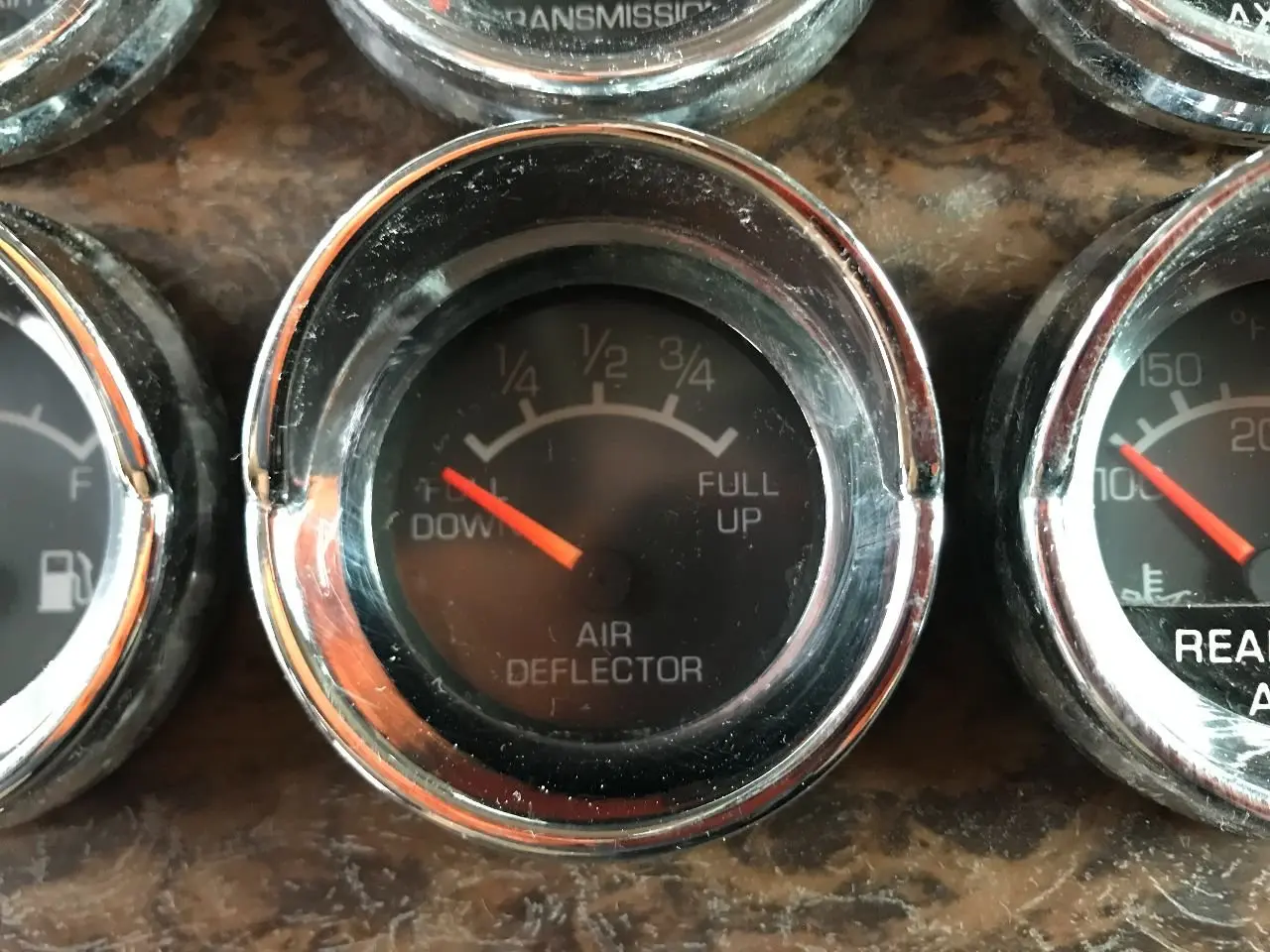 USED: USED AIR PSI, TRANSMISSION TEMP, FWD REAR AXLE OIL TEMP, FUEL, AIR DEFLECTOR, REAR REAR AXLE OIL TEMP