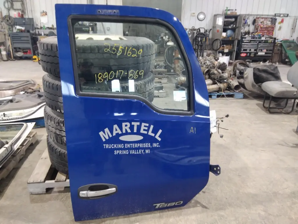 USED - A: USED - A USED RIGHT/PASSENGER SIDE FRONT DOOR ASSEMBLY OFF A 2019 KENWORTH T680. MIRROR NOT INCLUDED, POWER, BLUE IN COLOR.