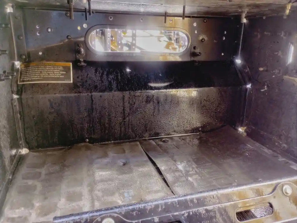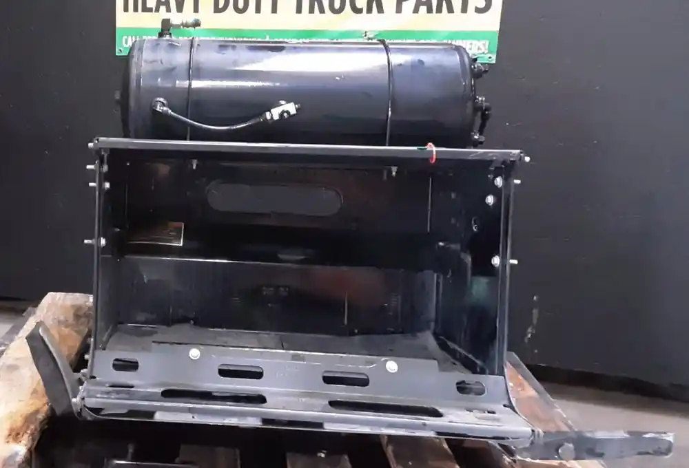 Used: Used Driver Side LH Battery Box, 30"L x 15"W x 16"D, P/N N10-6184-4000. 4 Battery Capacity. Includes 2 Air Tanks. Front Bottom Bracket Damaged.