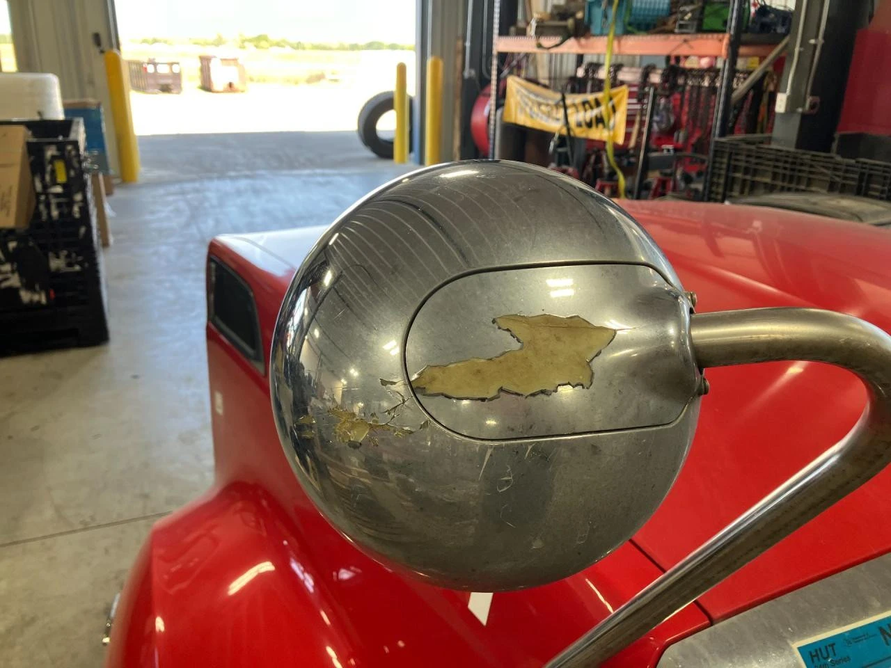 USED: USED COMPLETE HOOD, MINOR CRACK UNDER RH HEADLAMP (PICTURED) CHROME PEELING FROM BACK OF MIRRORS (PICTURED)